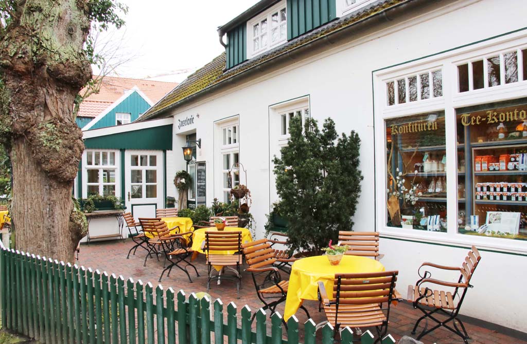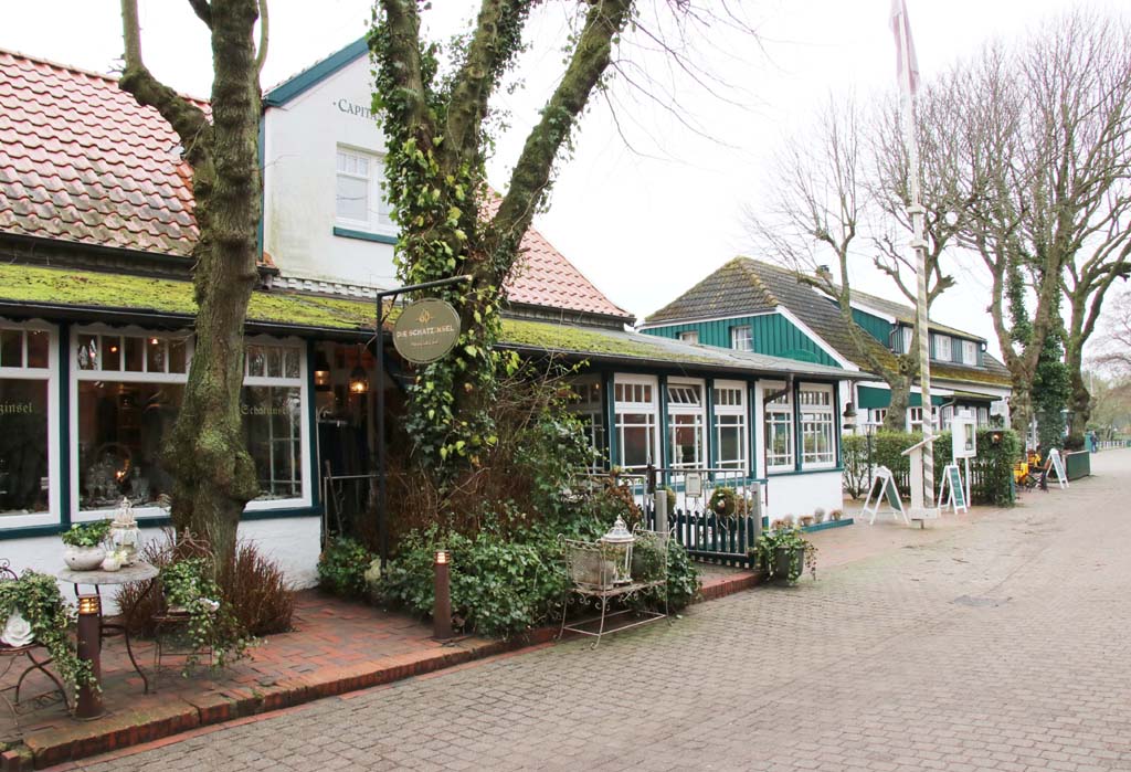Dekorativ schmiegen sich auf Spiekeroog die wenigen Geschäfte aneinander. Foto: Sohnemann