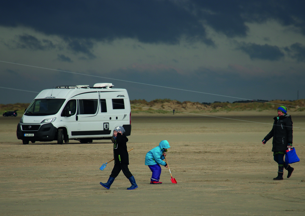 Die Insel ist tatsächlich an Beschaulichkeit nicht zu überbieten, weil sich ein paar tausend Gäste schnell auf dem riesigen Strand verlaufen oder verfahren, denn auf Rømø ist es üblich, mit dem Auto bis an der Strand zu fahren, die Kite-Schirme oder -Boards vom Dachgepäckträger oder aus dem Kofferraum zu nehmen und sich dem Meer und seinen Wellen hinzugeben. „Fantastisch“, schwärmt ein Wassersportler, der selbst vor herbstlichen Temperaturen keinen Halt macht.