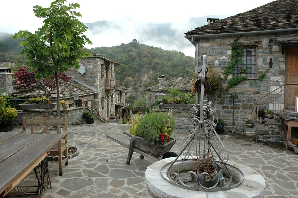 „Hinter den Bergen“, in der Sprache slawischer Einwanderer Zagori, liegt gleich eine ganze Reihe von Dörfern, um 1400 gegründet, die sich ihr traditionelles Ortsbild noch bewahrt haben. Die Häuser aus hellem Kalkstein sind farblich vollkommen der Landschaft angepasst. Zunächst war es den Bewohnern noch möglich, Reichtum durch Viehzucht und Handel zu erwirtschaften. Als die Industrialisierung begann, stagnierte jedoch die Entwicklung. „Die Bevölkerung verarmte“, schreiben die Autoren Claudia Christoffel-Crispin und Gerhard Crispin in einem in Erstauflage schon 1997 erschienenen Polyglott-Reiseführer über die Region. Ein großer Teil habe daraufhin die Gegend verlassen müssen. Zwischenzeitlich seien einige Auswanderer wieder zurückgekehrt, denn im bescheidenen Tourismus sei ein neuer Wirtschaftszweig erwachsen.