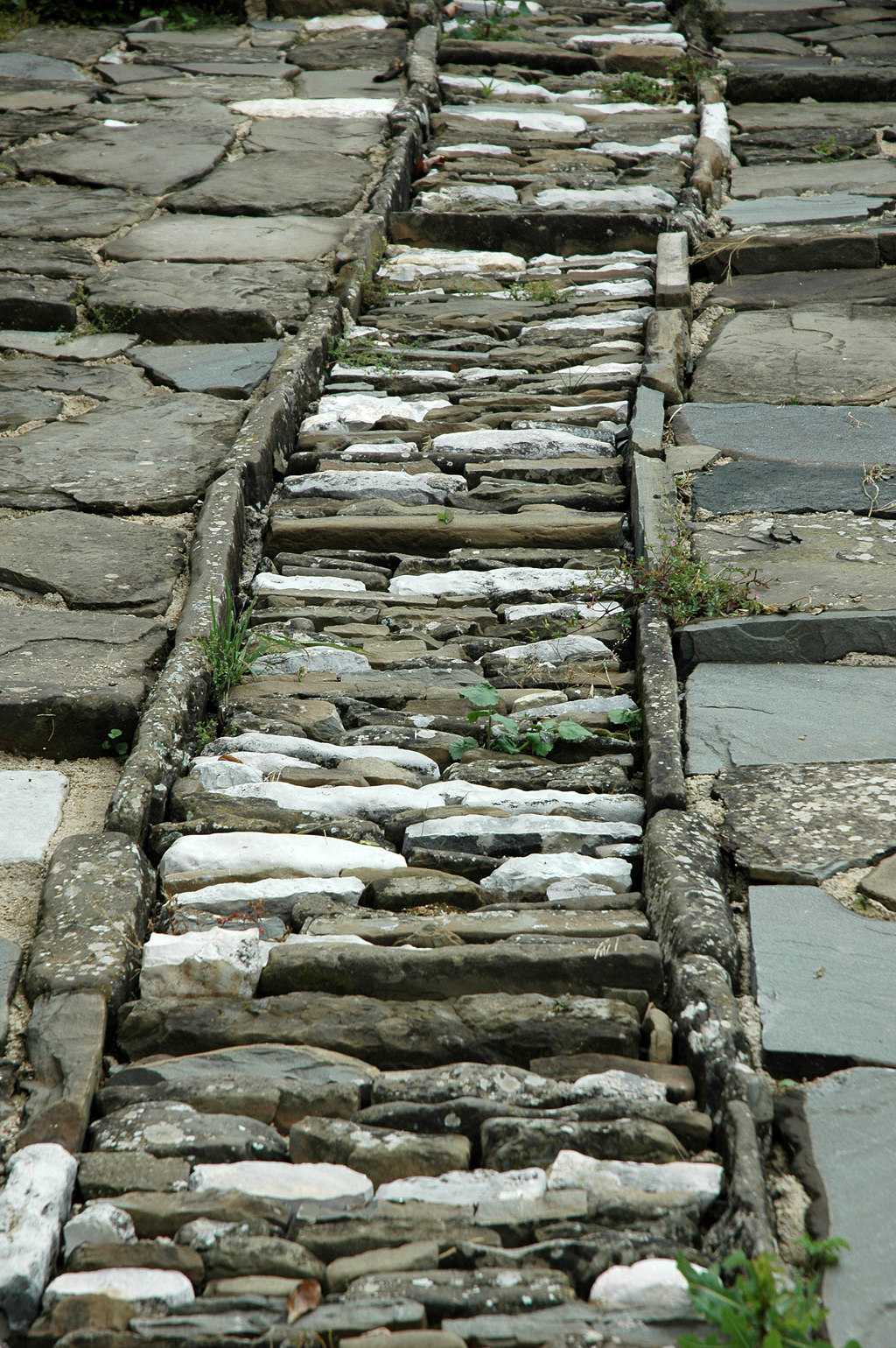 Monodendri ist so ein typisches Zagoria-Dorf. Wie Vitsa, Tsepelovo, Kipi oder Vradeto. Die Wege mit groben Steinen gepflastert. Häuser, die aussehen, als würden die Wände nur aus lose aufgestapelten unregelmäßigen Platten bestehen. Von diesem Ort aus kann man gut in den Nationalpark Vikos-Aoos wandern, wo der Fluß Voidomatis eine Schlucht in das Gestein gegraben hat, um die zehn Kilometer lang und bis zu 1000 Meter tief. Eine Piste führt nach Oxia, wo man einen herrlichen Blick über das grandiose Naturschauspiel genießen kann. Hinter Monodendri, noch am Weg zum Canyon, liegen auf einem Felsvorsprung die Mauern des Klosters Agia Paraskevi. Und schon fast am Ende der Schlucht windet sich ein Weg in steile Serpentinen hinauf. Nach Papingo, einem weiteren Zagoria-Dorf, dem Ziel unserer Reise.
