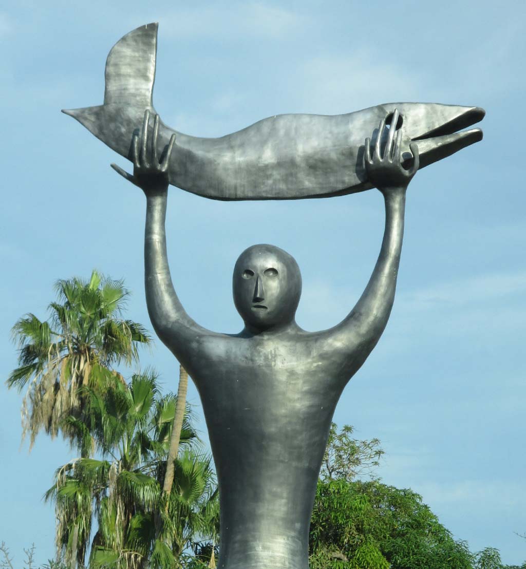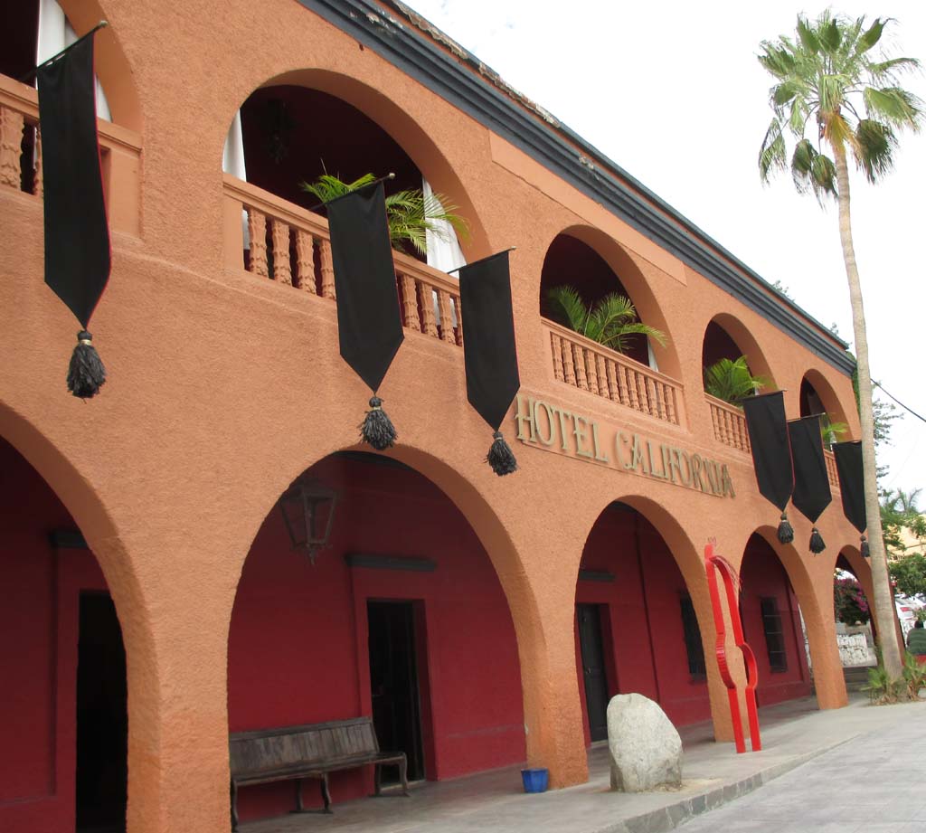 In den Gewässern vor Todos Santos, dem letzten Etappenort bei unserem Streifzug über die Baja California Sur, tummeln sich Haie, darunter der große Walhai, der aber nur Plankton frisst, Schwertfische wie der Marlin, dazu Delphine sowie zu bestimmten Jahreszeiten Grau-, Buckel-, Pott-, Schwert- und Blauwale. Das Haus, in dessen Innenhof wir spät zu Mittag essen, trägt einen besonderen Namen, auch wenn es hoch bis zur Grenze nach Tijuana und darüber hinaus noch viele andere „Hotel California“-Herbergen geben soll. Das in Todos Santos hat zumindest den Angaben zufolge ebenfalls nichts mit dem berühmten Eagles-Song aus dem Jahr 1976 zu tun. Auch wenn dessen erste Zeile eigentlich ganz gut zu dieser Region passen würde, zumindest bei Dunkelheit: „On a dark desert highway …“