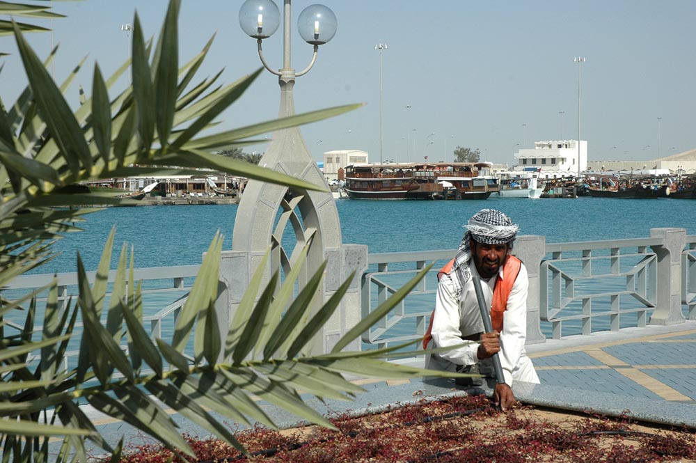 Die festgezurrten Dhau-Segler wirken altertümlich, sind aber nach wie vor einsatzbereit. Die Besatzungen sitzen an Deck, waschen Hemden, spielen Karten. An den Kais stapeln sich Waren. Hölzerne Tafeln vermerken Herkunft und Ziel der Boote: Aden, Djibouti, Muscat, Sansibar ... Zwischen den Ufern fahren kleinere Abras hin und her, zu Wassertaxis umgebaute Lastkähne. In Bastakiya, dem alten Wohnviertel in der Altstadt, finden sich tatsächlich, wie im Führer beschrieben, noch einige historische Häuser mit traditionellen Windtürmen. Dubai wie es früher einmal war. Lange vor den Zeiten des großen Booms.