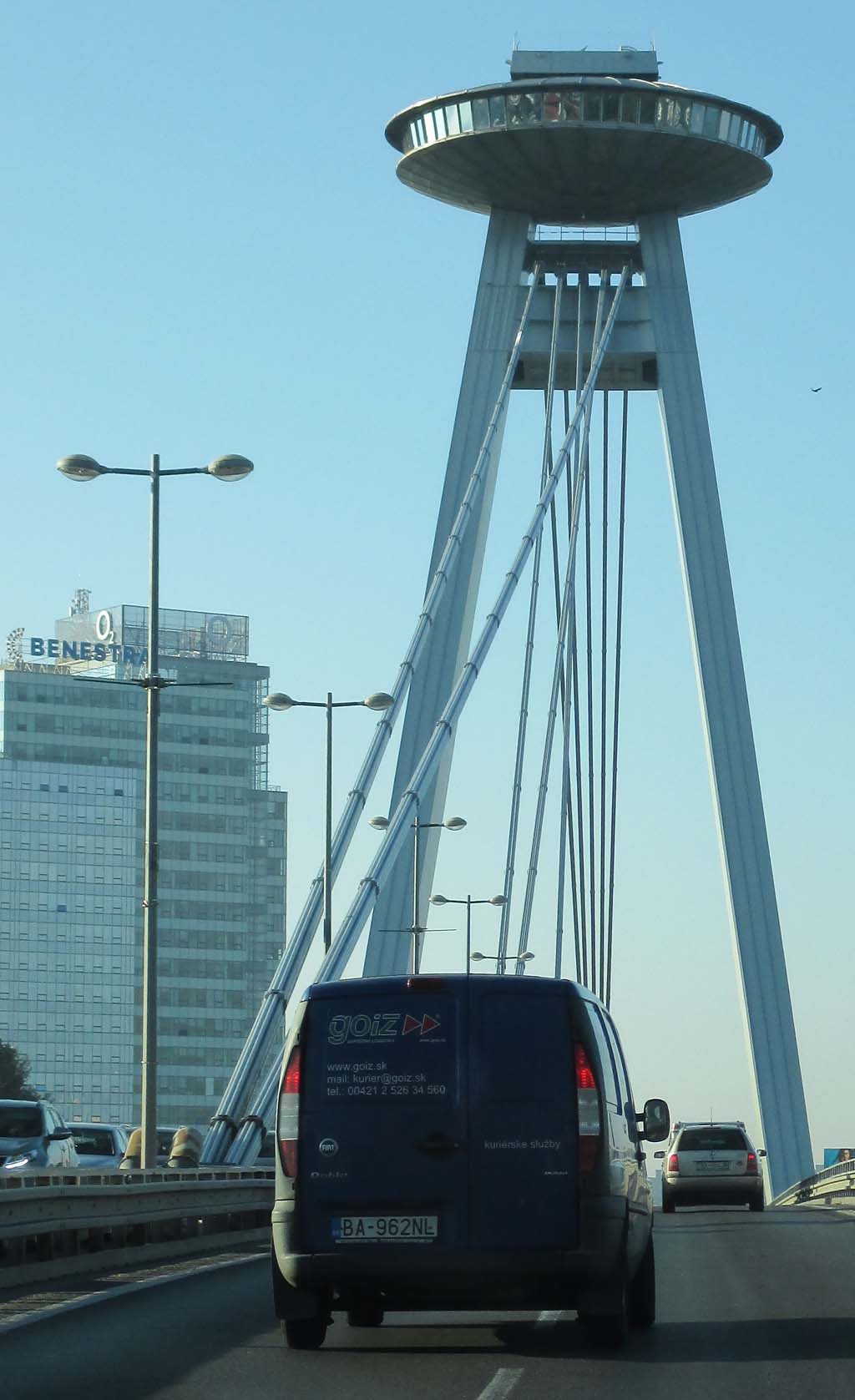 Dann endlich Bratislava! Die Schöne an der Donau, Krönungsort von Königen und Königinnen. Die mächtige Burg, die über der Stadt thront, heute als Repräsentationsgebäude des Parlaments dient und Ausstellungsstücke des slowakischen Nationalmuseums beherbergt. Der Martinsdom mit seinen imposanten Türmen. Das 1886 eröffnete Nationaltheater im historischen Gebäude. Alte Straßenbahnen, die über die Gleise rumpeln. Schmale Häuser. Wasserspiele an fast jeder Ecke. Das Präsidentenpalais Grassalkovich. Die auf dem Kopf stehende futuristische Pyramide. Der architektonisch ungewöhnliche Fernsehturm. Das coole Ufo-Restaurant hoch oben über der Donau auf einem Brückenpfeiler. Dazu unterirdische Mysterien, Katakomben und verborgene Plätze, zu denen es jede Menge Legenden gibt. Zum Beispiel die, dass die Tunnel der Stadt angeblich bis nach Wien führen.