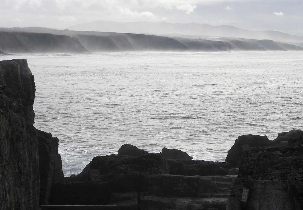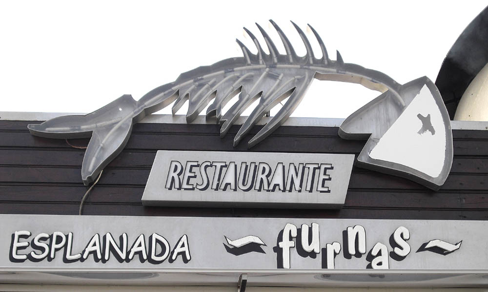 Auch im Restaurant Esplanada Furnas in der Rua Capitao Joao Lopes geht es jetzt um diese Jahreszeit, zumal nach Mittag, eher beschaulich zu. Die meisten Fische in einer Art Schauküche gleich am Eingang des Lokals sind weg. Die Langusten im Aquarium nebenan dürfen sich wohl noch etwas länger ihres Lebens freuen. Im Restaurant selbst sind bloß ein paar Tische besetzt. Auf der hölzernen Freiterrasse blinzeln Besucher, die – klar – „auf Durchreise“ sind, in die Sonne, genießen den eindrucksvollen Blick die von fjord-ähnlichen Einbuchtungen und Felszungen geprägte Steilküste entlang und auf das Meer hinaus.