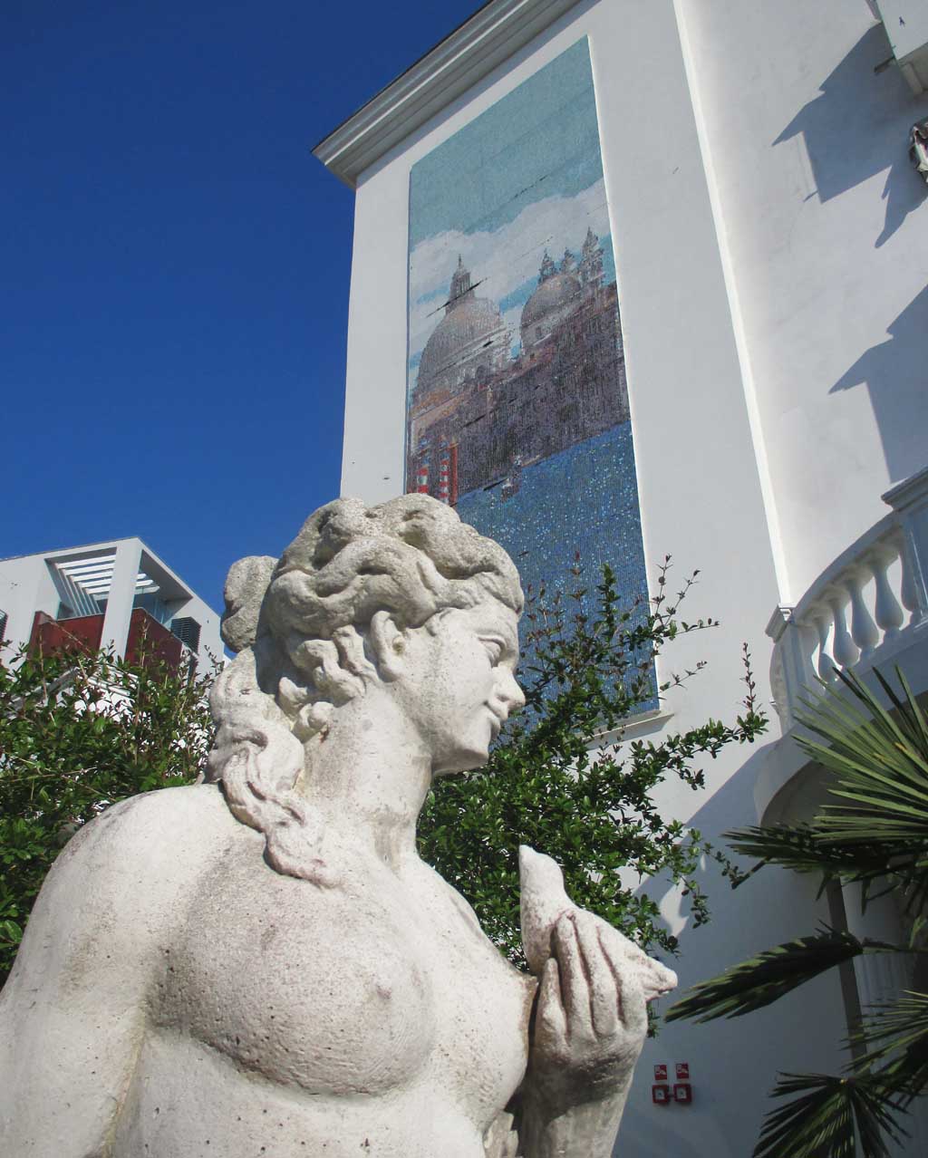 Wenigstens zum Übernachten kehren wir zur Küste nach Jesolo zurück, quartieren uns im Almar-Hotel ein. Die oberitalienische Adria beschreibt Autor Maiwald als ein „sandiges Paradies“, denn zwischen Grado, Lignano, Bibione, Jesolo und dem Lido di Venzia lockten kilometerlange, feine Sandstrände mit flacher, weitgehend kindersicherer Dünung, „die zudem allesamt nach Süden zeigen“. Die Sonne steht demnach fast immer direkt über dem Meer. Jesolo sei in Deutschland ein „beinahe ebensolcher Mythos wie Rimini“, betont Maiwald. Mit ihren im aufkommenden deutschen Wirtschaftswunder in den 1950er- und 1960er-Jahren frisch erstandenen Opel Kadett oder Opel Rekord seien die ersten Touristen über die Alpen hierher gereist, hätten sich in das Land verliebt. Fast fünf Millionen Gäste strömten immer noch jedes Jahr allein nach Jesolo. Der Staub der Vergangenheit sei dort „längst abgeschüttelt“ worden.