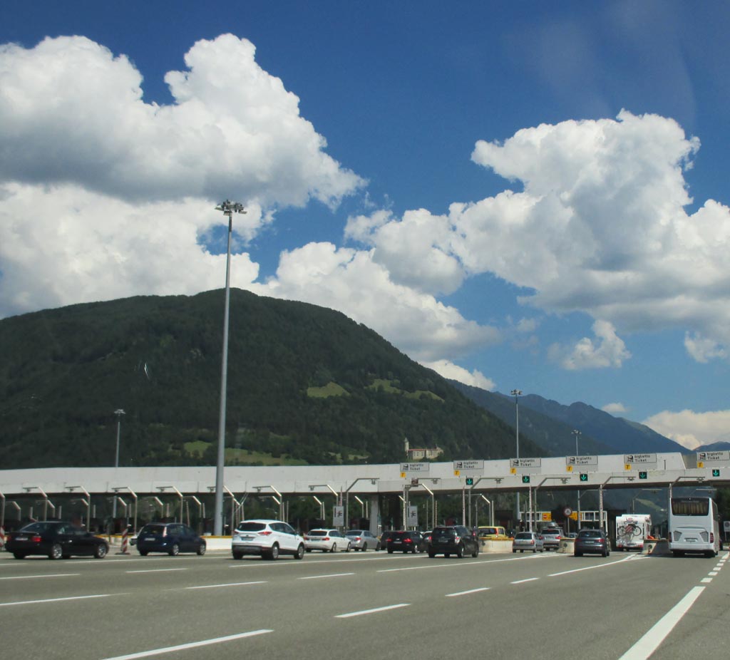 Weil wir uns um die Mittagszeit an der Gondelbahn Olang verabredet haben, nehmen wir den schnelleren Weg über die gebührenpflichtige Brennerautobahn. Wer Zeit hat (und das Geld für die Maut sparen will), kann alternativ die alte Brennerstraße B182 fahren. Die führt unter der Europabrücke durchs ins Tiroler Wipptal, durch Schönberg ins Stubaital und durch die drei Brennergemeinden Matrei, Steinach und Gries bis zur Grenze, wo sie in Italiens Staatsstraße 12 übergeht. Die über 520 Kilometer lange Strecke verläuft am Eisack entlang nach Bozen und von dort über Verona und Abetone schließlich bis nach Pisa.