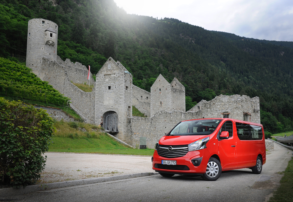Zwischen Brixen und Bruneck: Fotostopp mit dem Opel Vivaro Kombi. Foto: Opel