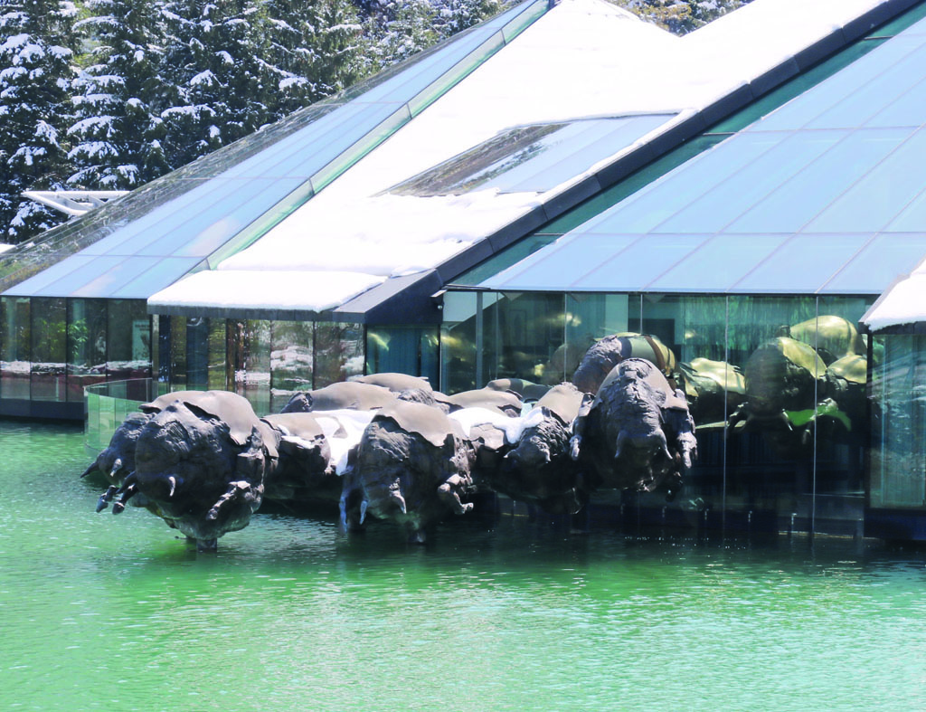 Anders im Hotel Ebner’s Waldhof am See. Das familiengeführte Haus in Fuschl ist mit 4000 Quadratmeter großem Spa eines der beliebtesten Entspannungsziele im Land. Da darf er ruhig auch einmal länger schneien, wenn Saunameister Karim die Kannen leert oder Fachleute zu Fußreflexzonen-Massage und ähnlich wohltuenden Anwendungen rufen. Fuschl selbst ist eine Gemeinde mit 1500 Einwohnern und macht auf den ersten Blick den Eindruck, als habe man sich dem Tourismus nur teilweise geöffnet. Wer durch den Ort fährt, kann die ins Wasser springenden Bullen des Brausekonzerns nicht übersehen. Das Unternehmen des Milliardärs Dietrich Mateschitz ist dort mit der Marketingabteilung unübersehbar vertreten. Aber auch Schloss Fuschl und eben Ebner’s Waldhof am See ziehen die Blicke auf sich.
