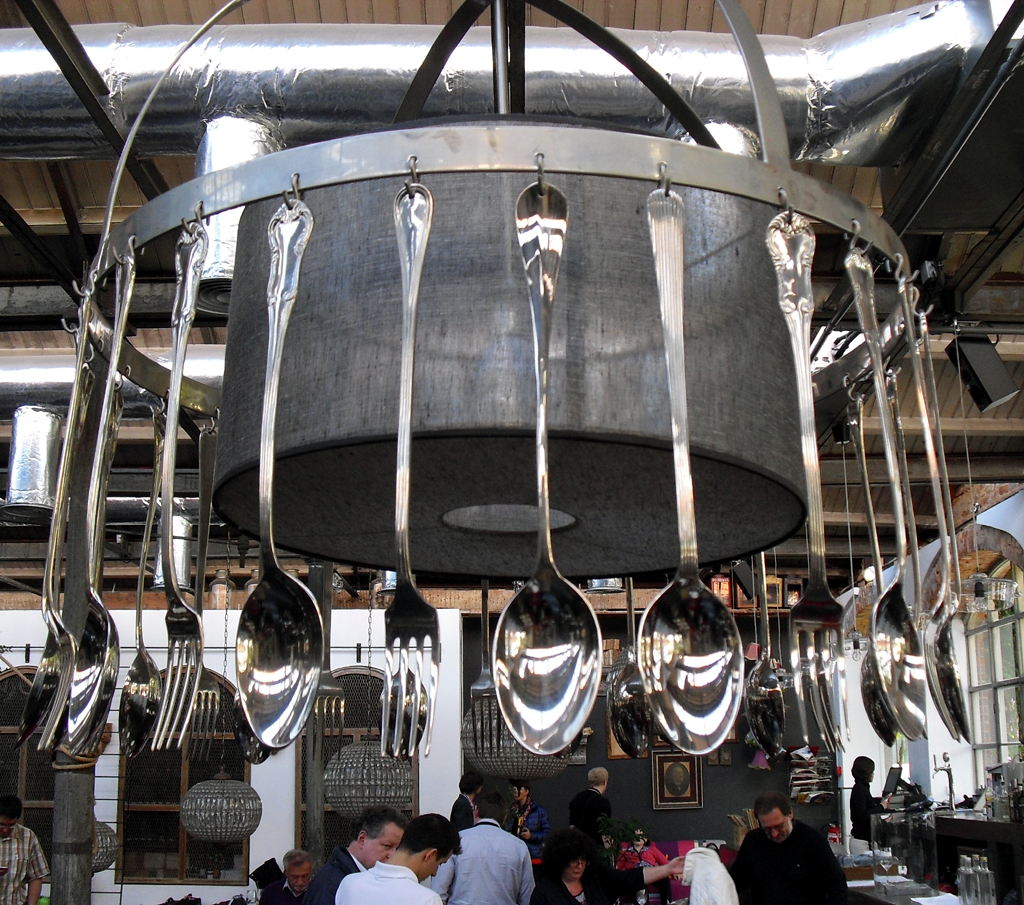 Da ist zum Beispiel die von einem jungen Team geleitete Taberna 1300, auf deren Karte „portugiesisch inspirierte Speisen mit dem gewissen Etwas“ stehen, wie es ein Besucher formuliert. Die Ausstattung ist genauso kreativ wie individuell – bis hin zu einem Kranz aus Silberlöffeln als Dekoration für eine Deckenleuchte. Da ist die übersetzt „Lies langsam“ überschriebene Buchhandlung Ler Devagar, in der sich Tausende von Büchern um riesige Original-Druckmaschinen auftürmen. Nein, Ler Devagar ist keine normale Buchhandlung und Bibliothek, hat sich als Restaurant, Bar, Galerie und Konzertsaal gleichermaßen in der LX Factory positioniert.