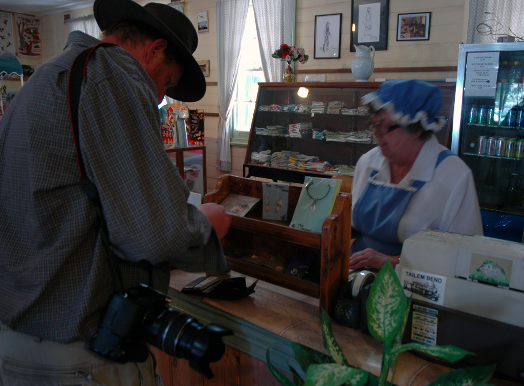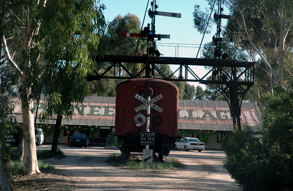Von Kingston fahren wir noch ein Stück am Meer entlang durch den Coorong-Nationalpark, ehe wir kurz vor Meningie etwas ins Landesinnere Richtung Lake Albert und Lake Alexandrina abbiegen. Meningie liegt bereits auf dem Gebiet von South Australia, dem Nachbarbundesstaat von Victoria, und direkt am Princess Highway. Inzwischen hat auch die Sonne im Kampf gegen die dunklen Regenwolken gewonnen. Andernfalls wären wir möglicherweise an Australiens größter Pioniersiedlung bei Tailem Bend einfach vorbeigerauscht. Peter Squires Freiluftmuseum Old Tailem Town erlaubt Einblicke ins harte Leben der frühen Siedler um 1860 bis hin zum dann schon etwas leichteren um 1960. Vor dem Areal sind alte Autos und Eisenbahnwagons platziert, dahinter rund 100 Gebäude und Stationen vom Postbüro über die Sattlerei und den Friseursalon bis hin zum Schlachthaus, alles liebevoll möbliert wie in damaliger Zeit.