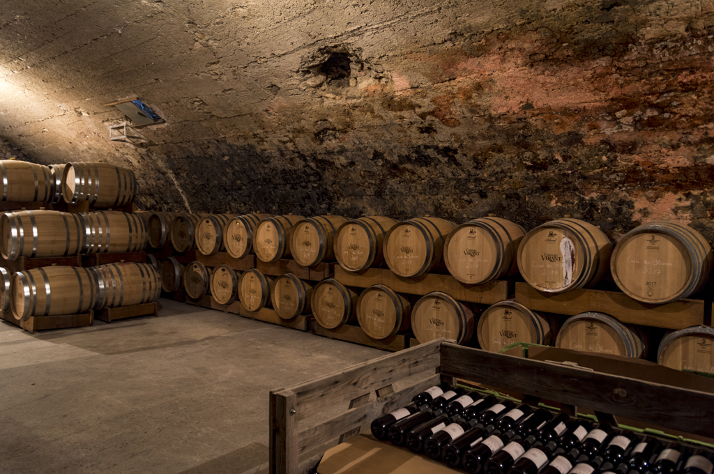 Der Name des 1632 errichteten Châteaus, schon wiederholt ausgezeichnet, geht auf einen Hügel zurück, von dem aus man in diesem Teil der Provence auf über 165 Hektar Weinlagen und Olivenhaine schaut. Im mittelalterlichen Keller unter steinernem Gewölbe reifen in Eichenfässern namhafter Küfereien aus dem Burgund und aus Bordeaux die roten, rosaroten und weißen Virant-Weine. „Sie tragen die Farben der Provence“, betont Aurelien nicht ohne Stolz, verweist auf rote Trauben wie Syrah, Grenache, Cabernet Sauvignon, Carignan, Caladoc, auf weiße wie Rolles, Clairette, Ugni Blanc, Chardonnay.