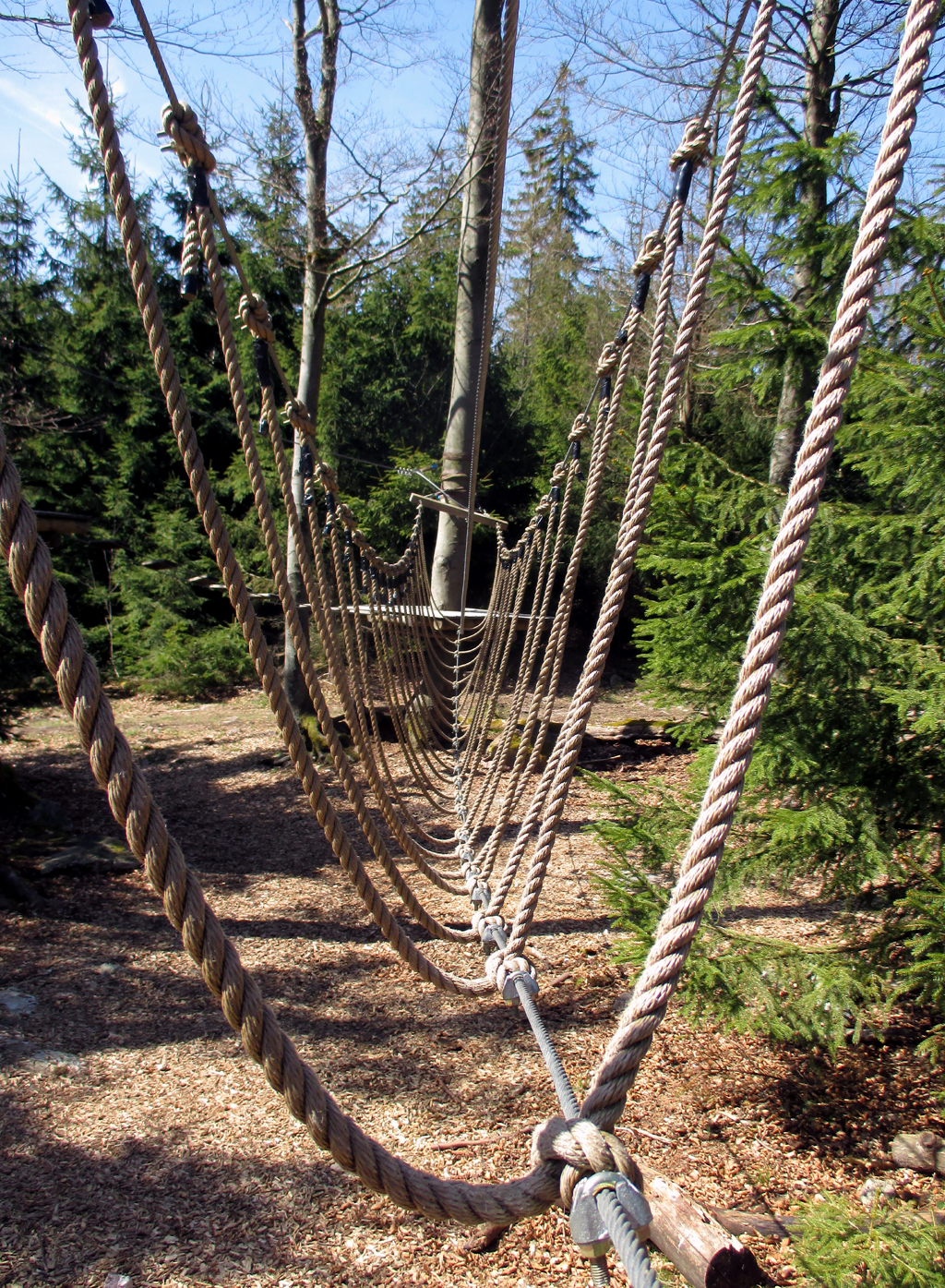 In Höhe von Eltville biegen wir Richtung Kiedrich und danach weiter zum Kloster Eberbach ab, jener weitläufigen, guterhaltenen mittelalterlichen Anlage, die Mitte der 1980er-Jahre unter anderem Drehort für Innenaufnahmen zur Verfilmung von Umberto Ecos „Der Name der Rose“ mit Sean Connery in der Hauptrolle war. Etwas südlich grenzt das Staatsweingut an. Über Hattenheim ist es nicht weit bis zur Hallgartener Zange, die uns die Gerhards empfohlen haben. Dabei handelt es sich um einen 580 Meter hohen bewaldeten Berg mit natürlicher Erlebniswelt, Kletterpark, Aussichtsturm und Gasthof auf dem Plateau. Der gleichnamige Ringwall in der Nähe, vermuten Historiker, könnte einst dem nicht weit entfernten Kloster Eberbach als Fluchtburg gedient haben. Ein Denkmal erinnert an den Absturz eines Postflugzeugs 1935 und den Tod der gesamten Besatzung.