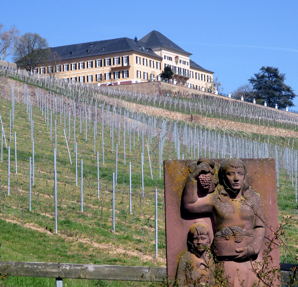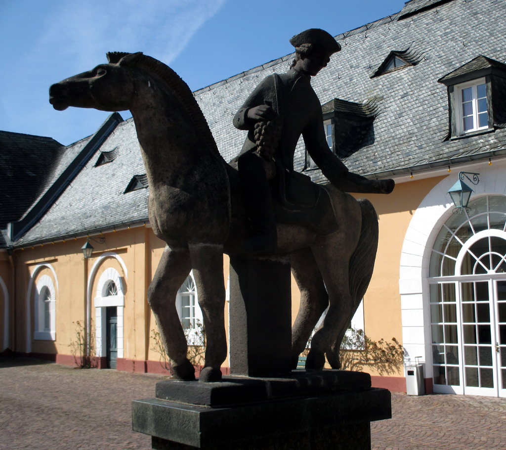 Szenenwechsel. Schloss Johannisberg über Geisenheim. Vor 1200 Jahren soll der damals wohl mächtigste Mann Europas, Karl der Große, befohlen haben, einen Weinberg mitten im Rheingau anzulegen. Weil er von seiner Pfalz auf der anderen Seite des Rheins in Ingelheim aus angeblich beobachtet hat, dass der Schnee zuerst auf dem Johannisberg schmilzt, lässt er die Reben genau dort pflanzen – und eines der ältesten Weingüter der Welt entsteht. Ein Kloster der Benediktiner folgt, später das Schloss, in dessen Innenhof eine Reiterskulptur heute die vermeintlich „zufällige Entdeckung der Spätlese“ erklärt: Demnach überbringt ein Kurier 1775 die fürstbischöfliche Erlaubnis zum Beginn der Weinlese zwar zu spät, die Mönche – Kloster Johannisberg liegt nicht weit entfernt vom Schloss – keltern die Trauben aber trotz „Fäule“ – mit dem bekannten Ergebnis, dass am Ende ein „vortrefflicher Wein“ daraus wird.