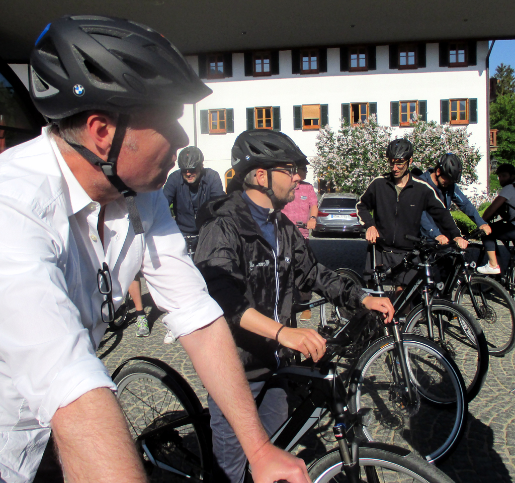 Rottach-Egern, Hotel Bachmair Weissach. BMW stellt am Tegernsee seinen überarbeiteten 2er Active Tourer vor, der zusammen mit dem bis zu siebensitzigen Gran Tourer ein Gespann bildet. Auch um das Active Hybrid E-Bike der Münchner geht es. Wir machen jetzt genau das, hat BMW-Sprecher Florian Moser vorher schon angekündigt, was 2er-Active-Tourer-Fahrer vermutlich auch machen würden, nämlich Radfahren!