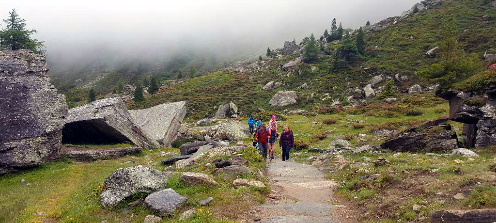 Wegweiser kennzeichnen die Route, auf der das große „Ü“ für „Alpenüberquerung“ die Richtung vorgibt. Die Wege sind bei normalem Wetter gut zu gehen, werfen aber bei Eis und Schnee, was selbst im Sommer in höheren Lagen schon mal passieren kann, Probleme auf für den einen oder anderen Marschierer aus der norddeutschen Tiefebene. Doch die einzelnen Wanderpunkte, an denen man sich seine Stempel abholen kann, sind grundsätzlich mit Fachkundigen besetzt, die ihre Kenntnisse über das Wetter nicht für sich behalten. Auch Hoteliers oder Herbergseltern sind in Wetterwarnungen eingeweiht.