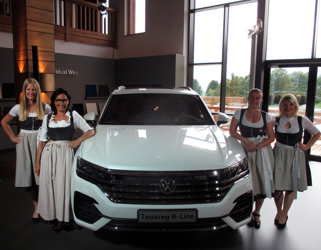 Geballte Frauen- und PS-Power: Barbara Winkler (Zweite von links) mit Mitarbeiterinnen während einer internationalen Veranstaltung 2018, bei der VW den neuen Touareg vorgestellt hat und die Kaiserlodge das Eventhotel war. Foto: Koch