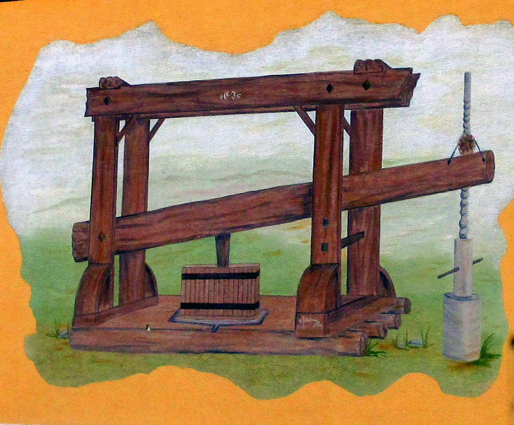 Zweimal Weiden: Weinpresse als Fassadengemälde sowie Dreifaltigkeitssäule und Pfarrkirche.