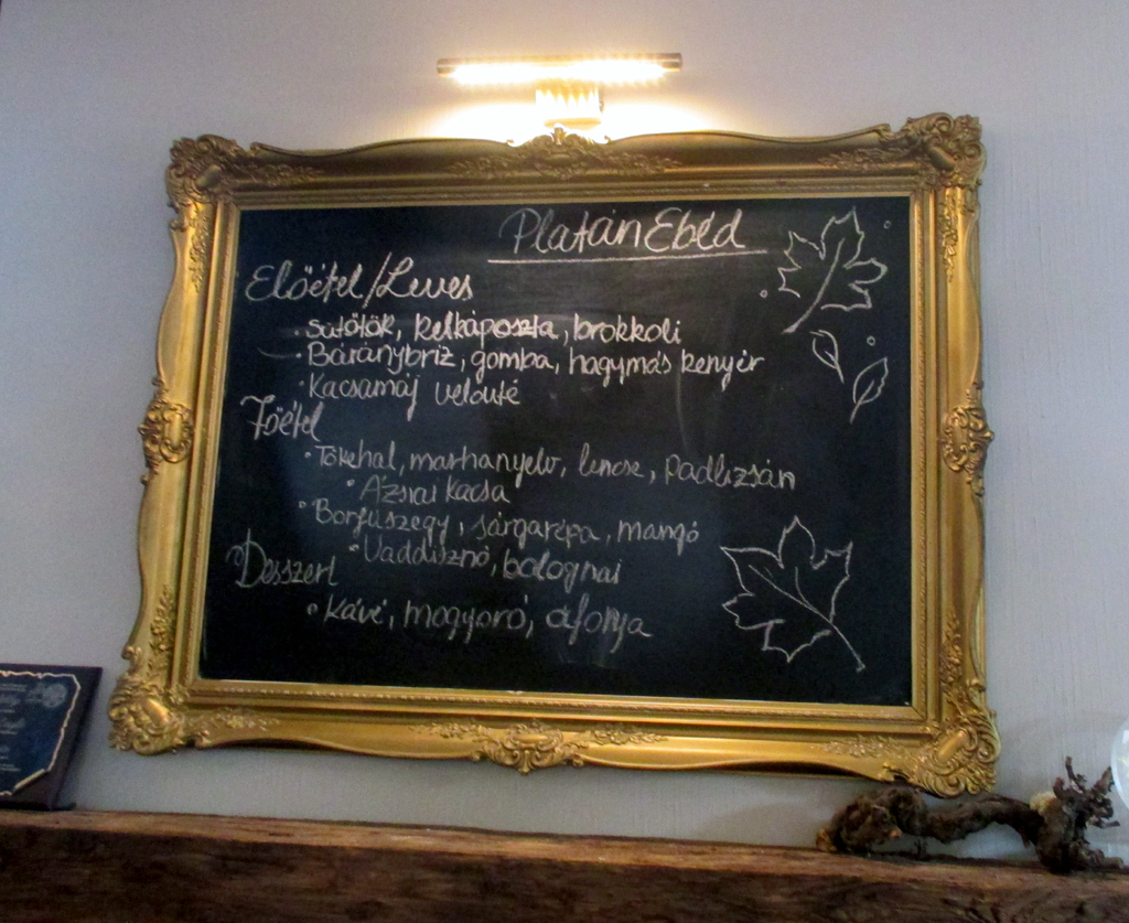Burg und Schloss Esterházy liegen in Tata dicht beieinander. Ungarische Speisetafel im Platán.