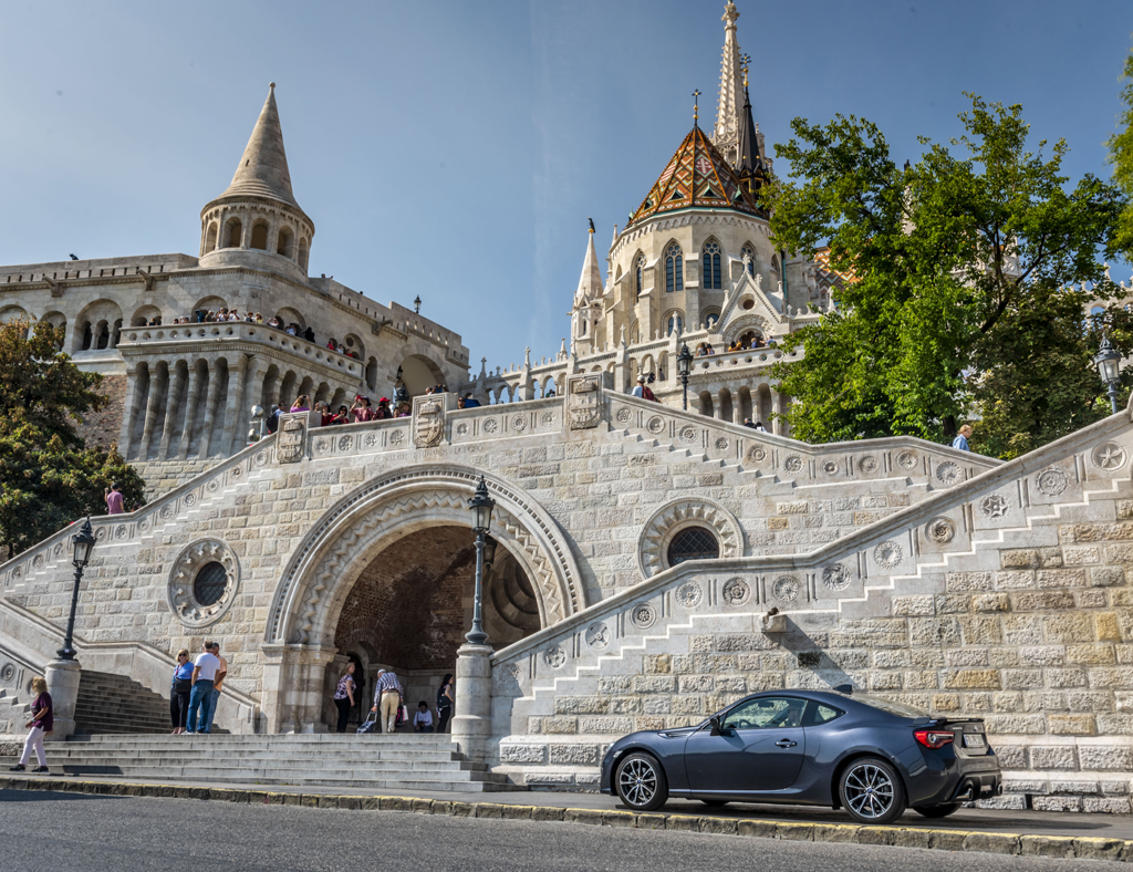 Der Name Esterházy taucht in der Region öfter auf. Subaru Sportcoupé BRZ in Budapest.