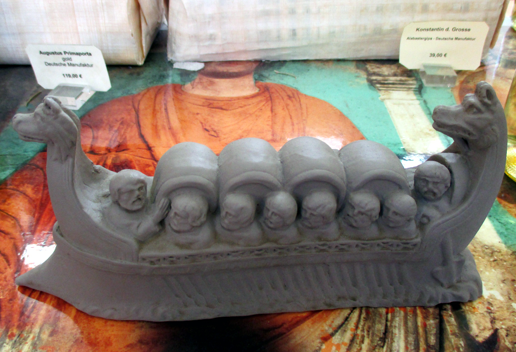 Simeon ist Einsiedler in der Porta Nigra gewesen. Dieses Römerschiff-Souvenir transportiert Wein.