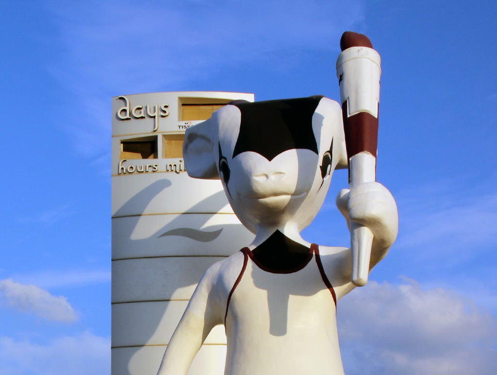 Maskottchen Oryx wirbt schon jetzt übergroß für das Fußball-Championat in vier Jahren. Die Al-Fanar-Moschee in Doha.