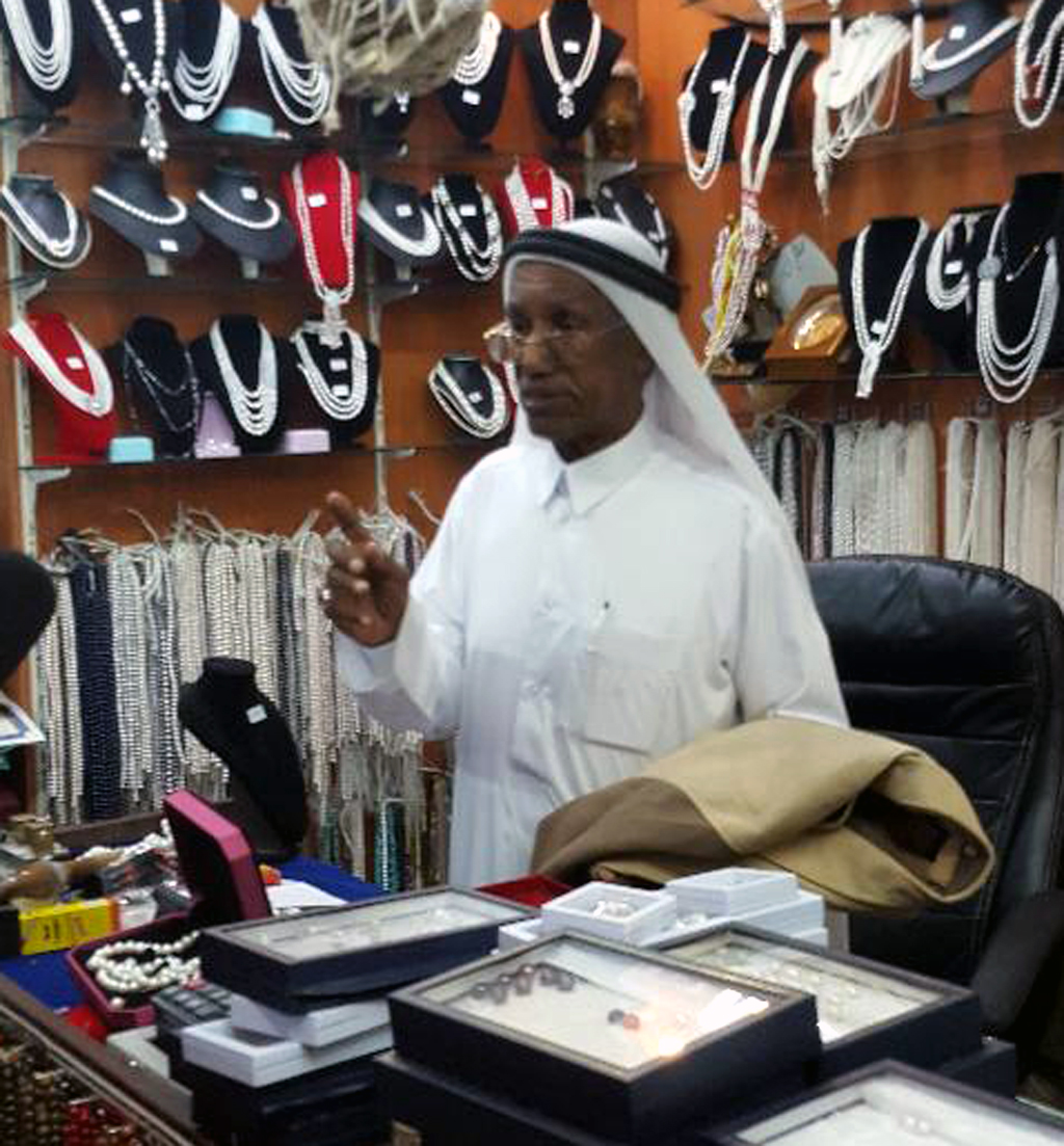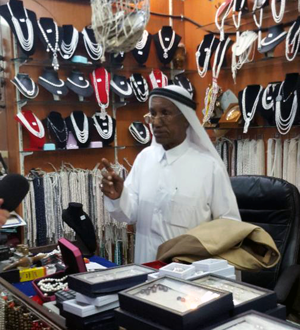 Die Gasse der Goldhändler nimmt eine besondere Stellung ein. Bei der Pracht der Geschmeide würde jede Elster Probleme mit dem Blutdruck bekommen. Wer etwas davon kaufen möchte, muss lediglich das Goldgewicht bezahlen. Ohne den Stolz auf sich selbst zu portionieren, erzählt einer der letzten aktiven Perlentaucher, Saad Ismail AL Jassim, in einem kleinen Laden von seinen Erlebnissen. Fotos aus seiner Glanzzeit an den Wänden lassen Beobachter staunen und verschämt die Feinkostgewölbe durch Einatmen in sich reduzieren. Der 85-Jährige, der auch Bodybuilder war, zählt zu den Legenden Dohas, wobei er sogar auf einem Wandgemälde der größten Moschee der Stadt verewigt ist.