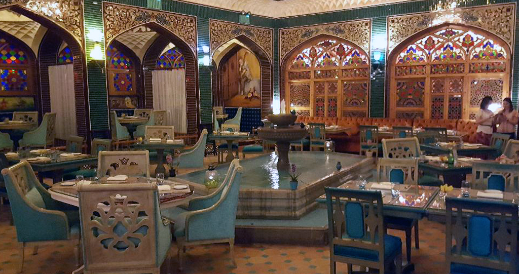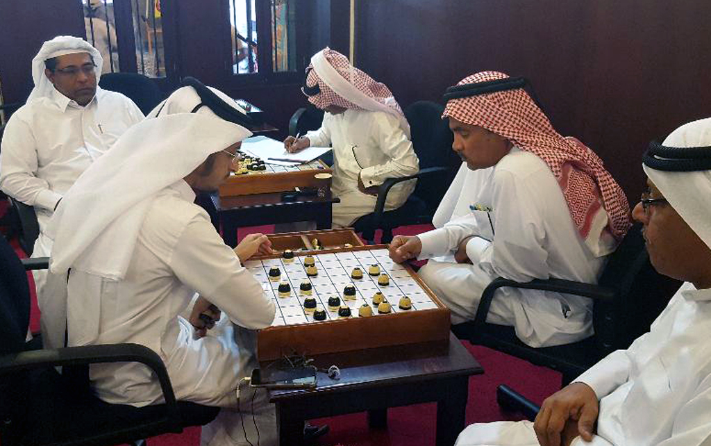 Qataris vertreiben sich die Zeit beim Brettspiel Dama. Blick ins wohl nobelste Restaurant am Souq Waqif, das Parisa.