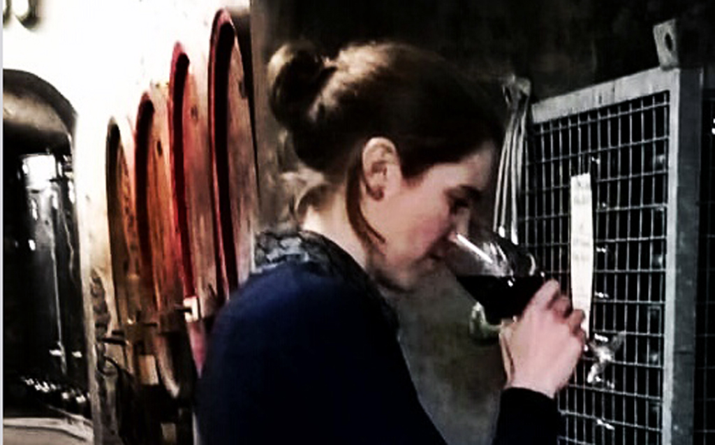 Jungwinzerin Michaela Gerhard bei einer ersten Probe, nachdem die Barriques abgefüllt sind.