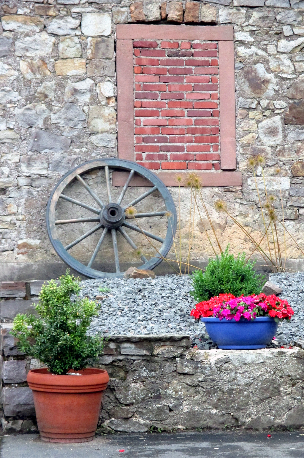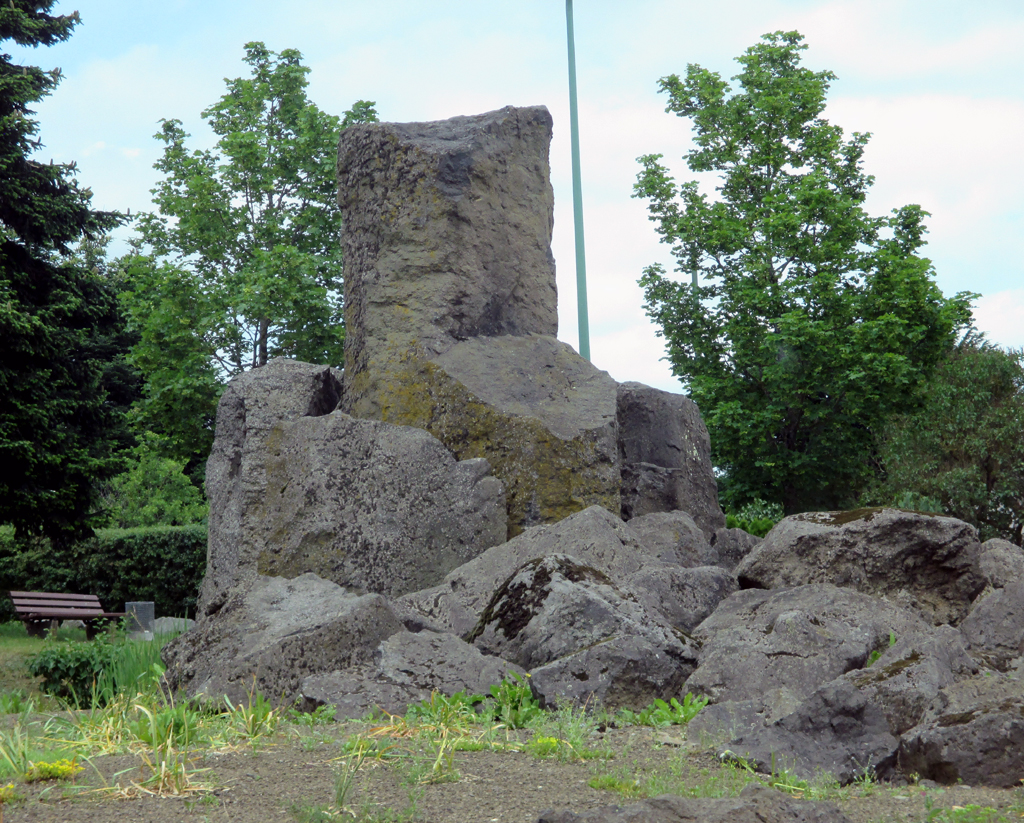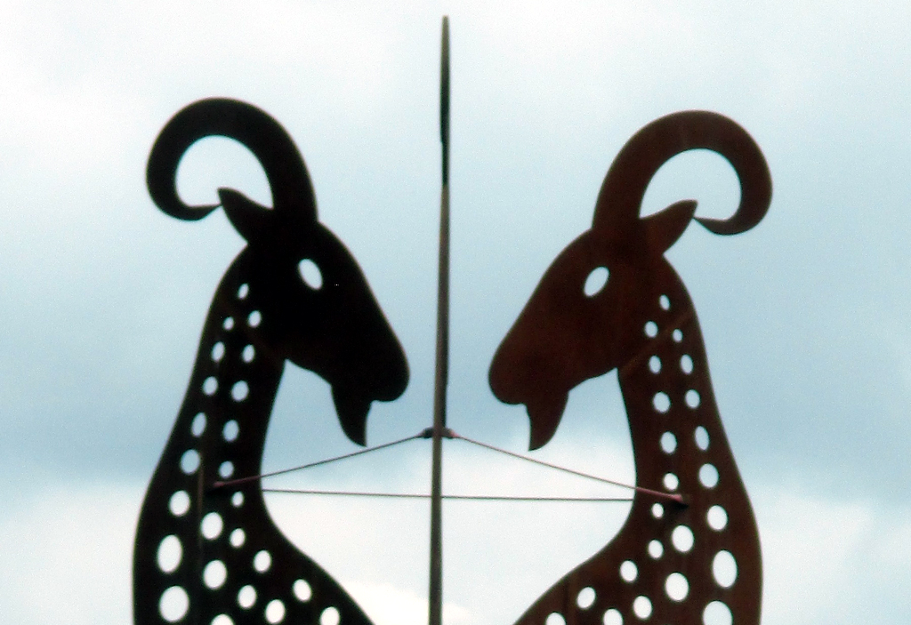 Die Ziegenskulptur weist auf den Bitburger Ziegenrat hin. Die Eifel steht nicht zuletzt ebenfalls für Bims und Basalt.