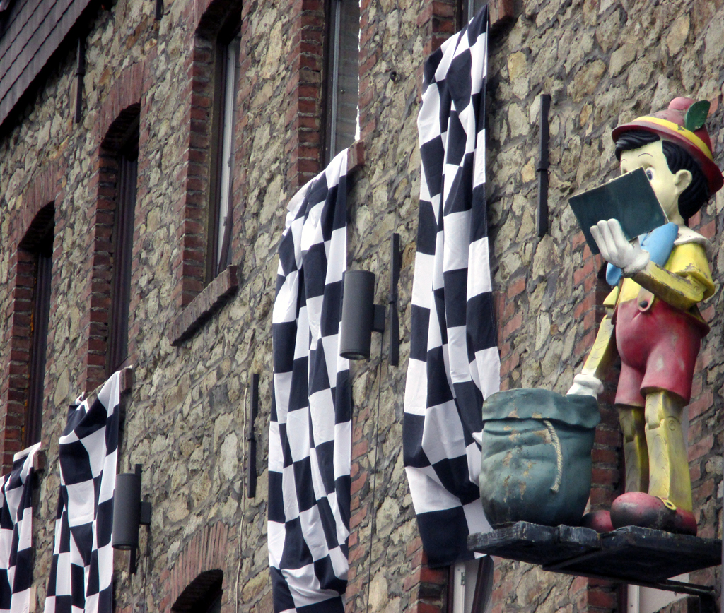 Auch Fachwerk hat der Ort in der Hocheifel zu bieten. Hinter dem Steinhaus rechts könnte Pinocchio stecken.