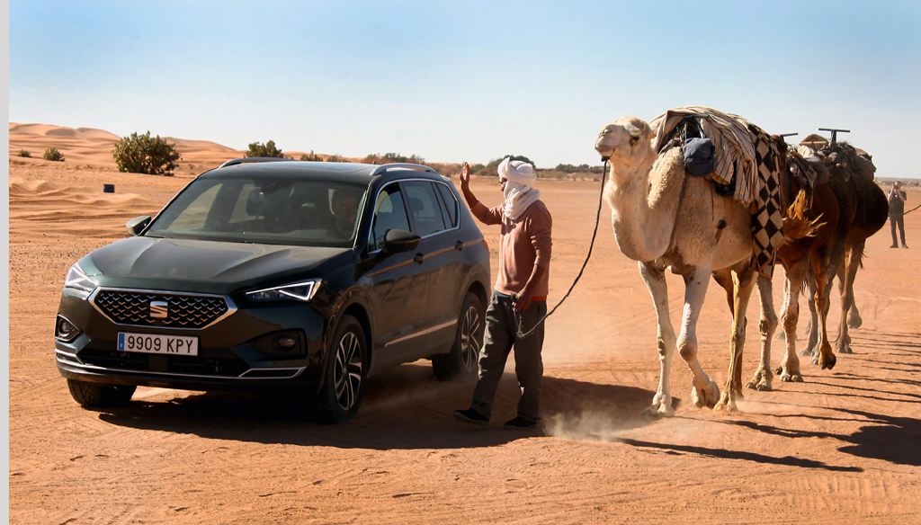 Insgesamt sind wir in Marokko 400 Kilometer unterwegs gewesen. Für die einzelnen Strecken haben wir bis zu anderthalb Stunden an reiner Fahrzeit gebraucht. In Marokko darf in Orten nur 30, außerhalb 60 und auf Autobahnen 120 gefahren werden. Alkohol am Steuer ist komplett verboten! Größere Flughäfen finden sich neben Rabat noch in Marrakesch und Casablanca. Das erstmals in dem Land eingerichtete Wüstencamp hat für Seat eine übergeordnete Bedeutung. Der nordafrikanische Markt ist eine der wichtigsten Regionen für die Globalisierungsstrategie der Marke. Die Reise in Marokko fand im neuen Seat Tarraco statt, der seit Februar zu Einstiegspreisen ab 29 980 Euro als Turbobenziner und Turbodiesel jeweils mit 150 und 190 PS mit und ohne Allrad bei den Händlern steht.