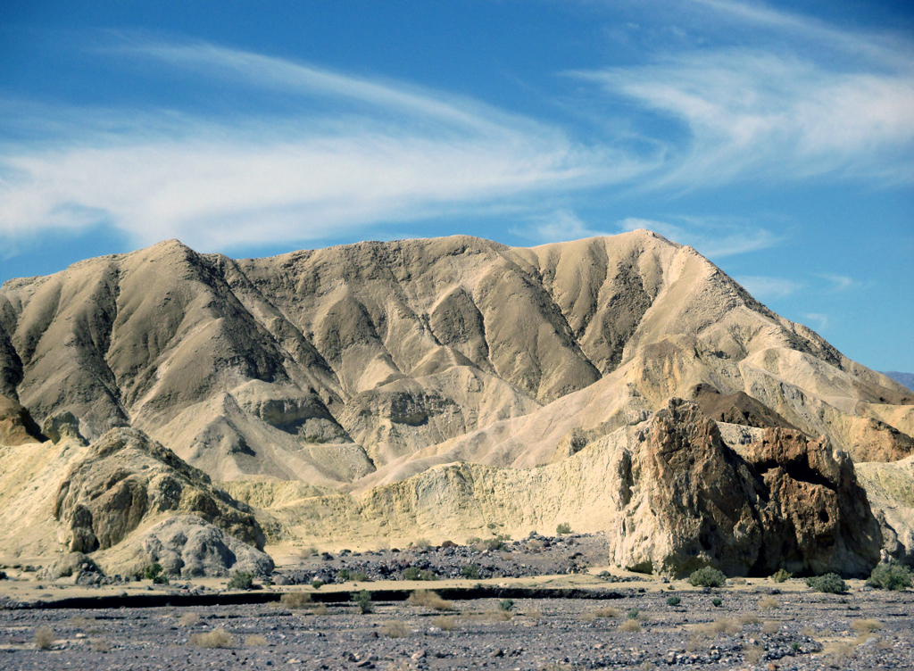 Bis an die kalifornische Küste im Westen der USA ist es eigentlich jetzt gar nicht mehr so weit. Trotzdem stellt das Tal des Todes eine der trockensten Gegenden der Erde dar. Was auch damit zu tun hat, dass sich feuchte Winde vom Pazifik an mehreren Bergrücken abregnen, ehe sie – dann nur noch mit wenig Niederschlägen – überhaupt über das Gebiet ziehen können. Kein Wunder, dass Death Valley zugleich eine der heißesten Gegenden Amerikas ist. So etwas wie ein Hitzepol! Am 10. Juli 1913 sollen vom nationalen Wetterservice beim heutigen Furnace Creek 56,7 Grad gemessen worden sein, am 12. Juli 2012 die wärmste nächtliche Tiefsttemperatur mit 41,7 Grad, ein Wert, bis dahin vorher nur einmal erreicht, nämlich im 27. Juni 2012 am Flughafen Khasab im Oman. Nur aller paar Jahre, zuletzt 2016, regnet es den Aufzeichnungen zufolge mehr als gewöhnlich. „Dann“, sagt die Bedienung im Death Valley Inn, „kann es durchaus sein, dass das Tal sogar zum Blütenmeer wird.“ Zumindest für kurze Zeit.