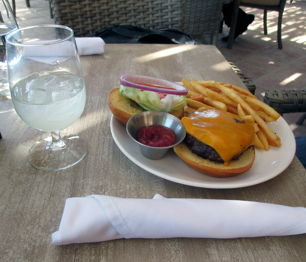 ... sogar mit mediterraner Architektur und Vegetation sowie, natürlich, mit Burger mit Pommes und Ketchup dabei.