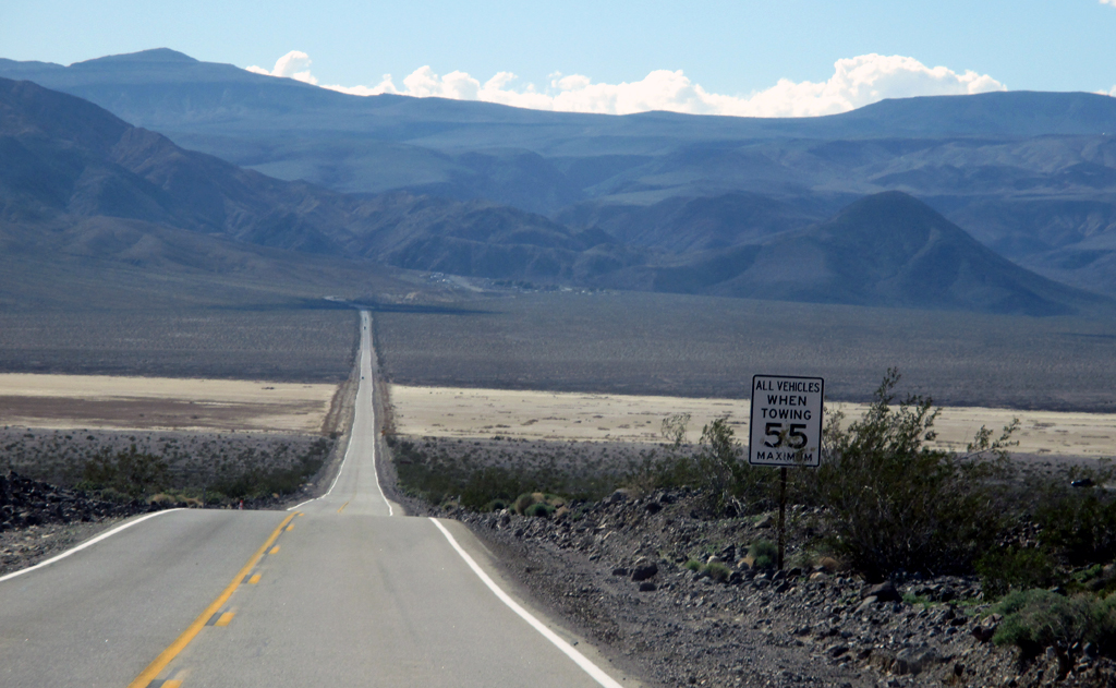 Wir klinken uns in die Schlussetappe ein, eben in die von der Wüste ans Meer, von Las Vegas in Richtung Los Angeles. Auf dem Pahrump Highway geht es erst durch den Red Rock Canyon Nationalpark, später an weiteren Naturschutzgebieten vorbei. Nördlich militärische Sperrzonen, denen man lieber nicht zu nahe kommen sollte! Eine Area neben der anderen, alle mit Nummern versehen, darunter die für Kernwaffen-Tests. Auch Täler gibt es eine ganze Menge links und rechts vom Highway. Sie tragen Namen wie Bird Spring, Stewart oder Greenwater Valley. Doch kaum eines davon dürfte schon vom bloßen Namen her diese Anziehungskraft haben wie das, in dem diese Erzählung spielt: