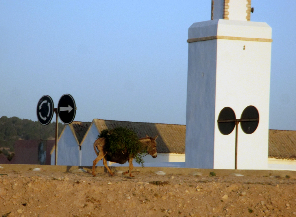 Ob marokkanische Esel auch schon Richtungspfeile kennen? Rechts geht's nach Agadir, geradeaus nach Casablanca.