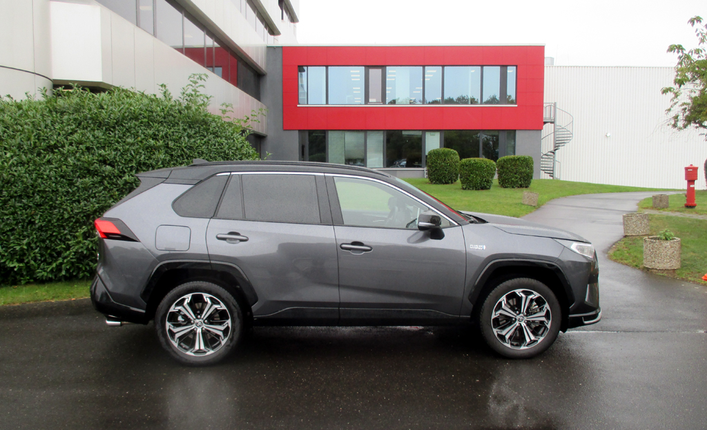 Die Antriebskennung ist hinten und an der Seite platziert. Und so sieht der RAV4 von der Seite aus.