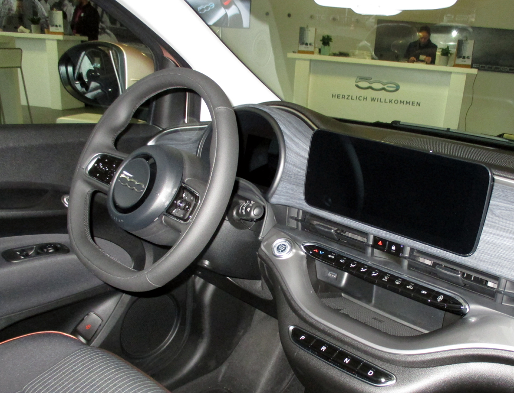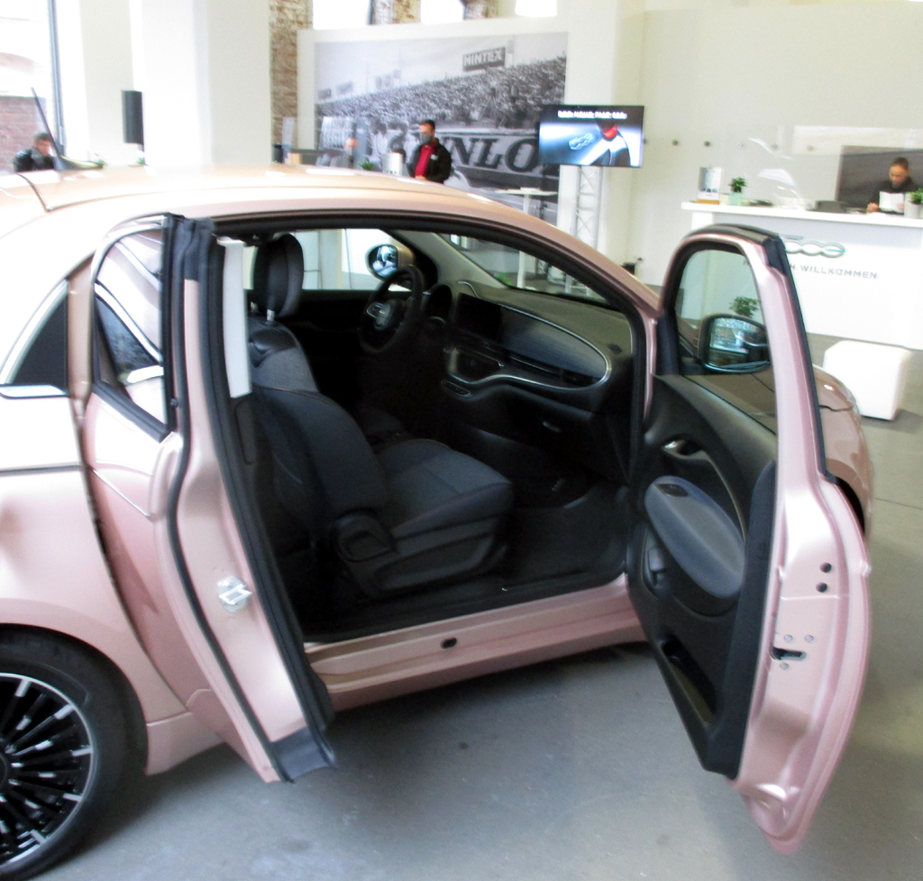 Frankfurt/Main – Süß, diese Kulleraugen! Die in Wirklichkeit die vorderen Halbrundleuchten des kleinen Fiat 500 sind. Und doch soll es vorkommen, dass die, die ihre Knutschkugel besonders ins Herz geschlossen haben, die Scheinwerfer mitunter sogar noch wimpernartig verzieren. Anne Wollek findet die aber auch so schon schön genug, würde das natürlich gern gleich aufs ganze Auto beziehen, den neuen elektrischen Fiat 500, vor dem Fiats Deutschland-Sprecherin bei der Fahrvorstellung in der Frankfurter Klassikstadt gerade steht. Mit ihm, ohne Prämie zu Einstiegspreisen ab 23 560 Euro zu haben und noch im November bei den Händlern, positioniert sich der italienische Spätstarter in Sachen Elektro im Umfeld vergleichbarer Kleinstwagen aus dem Volkswagen-Konzern wie Seat Mii Electric, Skoda Citigo iV und VW E-Up, während andere Stromer wie Honda-e, Nissan Leaf, Opel Corsa-e, Peugeot-208-e, Renault Zoe schon etwas kompakter sind.
