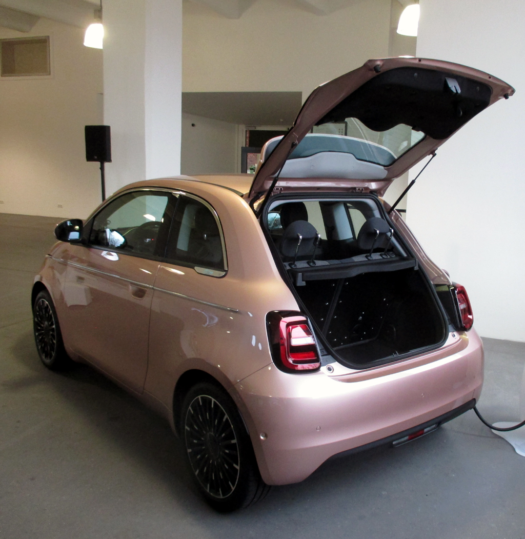 Alles in allem: Klein. Knuffig. Flott. Geräumiger. Ein Italiener, diesmal mit Temperament dank modernem Elektroantrieb. Mit einer ganzen Reihe an Elektronikhilfen und Möglichkeiten der Vernetzung. Mit Sitzbezügen aus Recycling-Materialien. Und sogar mit Musik, die unterhalb von Tempo 20 erklingt, um Fußgänger auf den sonst weitgehend lautlosen Stromer aufmerksam zu machen. Eine kurze Sequenz aus Federico Fellinis Filmkomödie „Amarcord“ von 1973 in Anspielung auf „A m’arcord“, Dialekt für „Io mi ricordo“ („Ich erinnere mich“). „Natürlich“, sagt Fiat-Sprecherin Wollek, „italienisch!“