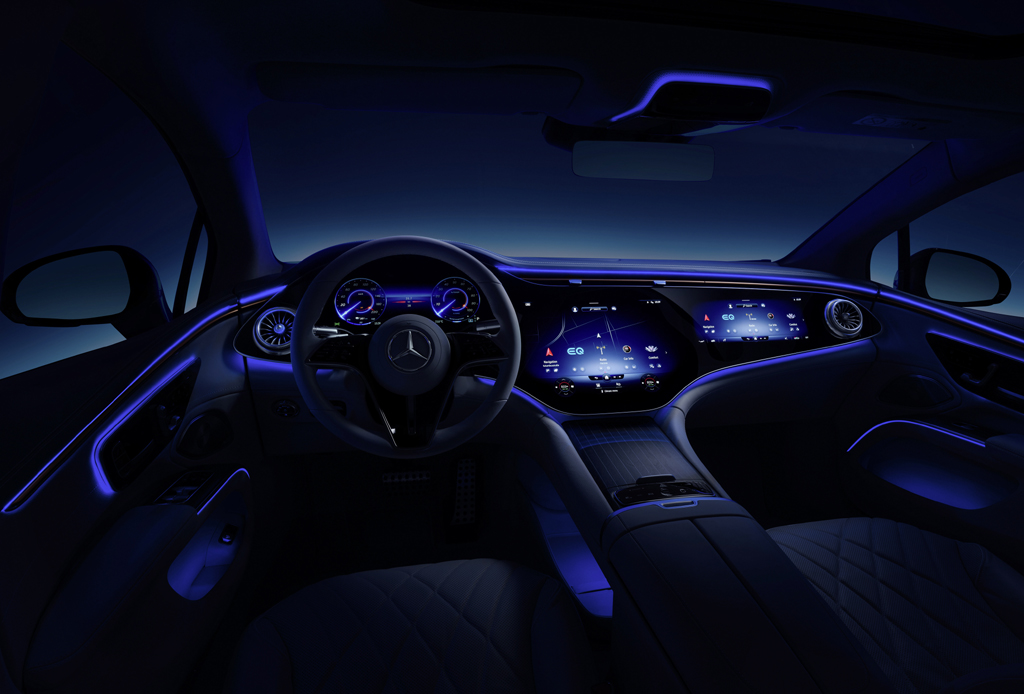Die serienmäßigen oder optionalen Besonderheiten reichen etwa von der zu einer Einheit zusammengefassten Front über durch Leuchtband verbundene Scheinwerfer, tiefschwarze Kühlerverkleidung, Digitallicht, spezielle Linienführung mit Fließheckdesgin, automatische Komforttüren, effektiverer Innenluftkontrolle samt Filter, Fahrpilot, Navigation mit elektrischer Routen- und Ladestoppintelligenz, „Over the air“-Updates komplett neuer Fahrzeugfunktionen und verschiedene Klangwelten bis hin zu neuen Fahrerassistenzsysteme wie der zusätzlichen Sekundenschlafwarnung.