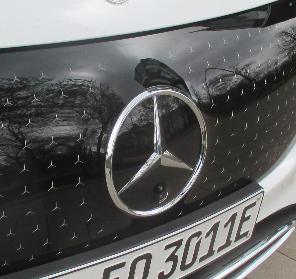 Blick auf den Vorderwagen mit dem Markenstern in der Frontpartie.