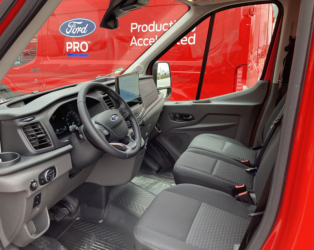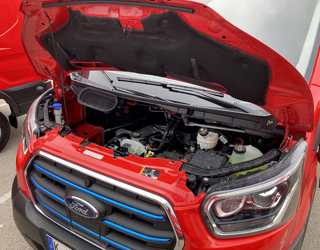 Basis und Trend heißen die beiden Ausstattungen für den deutschen Markt, die gegenüber den Dieselversionen laut Ford über einen erweiterten Lieferumfang verfügen. So gehören etwa Klimaautomatik und die jüngste Ausbaustufe des Kommunikations- und Unterhaltungssystems samt Zwölf-Zoll-Multifunktionsdisplay und ständig Cloud-basierter Vernetzung schon zum Grundumfang des Einstiegsmodells. In der Stufe darüber kommt der E-Transit mit Navigation, effizienterer Routenplanung und aktuelleren Informationen etwa zu Verkehr, Reichweiten und Ladepunkten daher. Bereits ab Werk sind moderne Assistenz- und Sicherheitssysteme an Bord. Die Liste möglicher Elektronikhilfen reicht von der Fußgänger- über Verkehrsschilderkennung, Adaptivtempomat, Totwinkel-, Spurwechsel-, Fahrspurwarner und Fahrspur- bis zur Kreuzungsassistenz. Andere neue Systeme sollen Personenschäden vermeiden helfen oder Parkremplern entgegenwirken. Neu ist laut Ford ein bis zu 2,3 Kilowatt starker 230-Volt-Stromanschluss in der Kabine und im Laderaum zum Betrieb externer Maschinen oder Kühlaggregate.