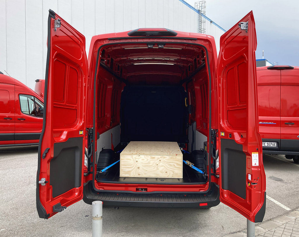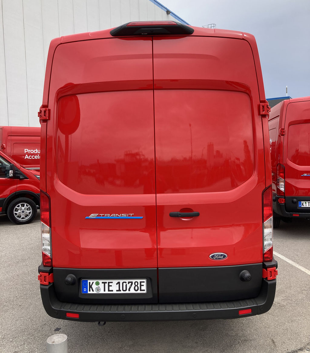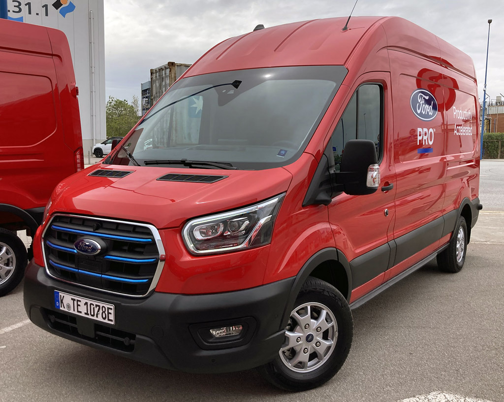 Den Transit, hier als großer Kastenwagen, gibt’s jetzt auch vollelektrisch. Fotos: Waldinger