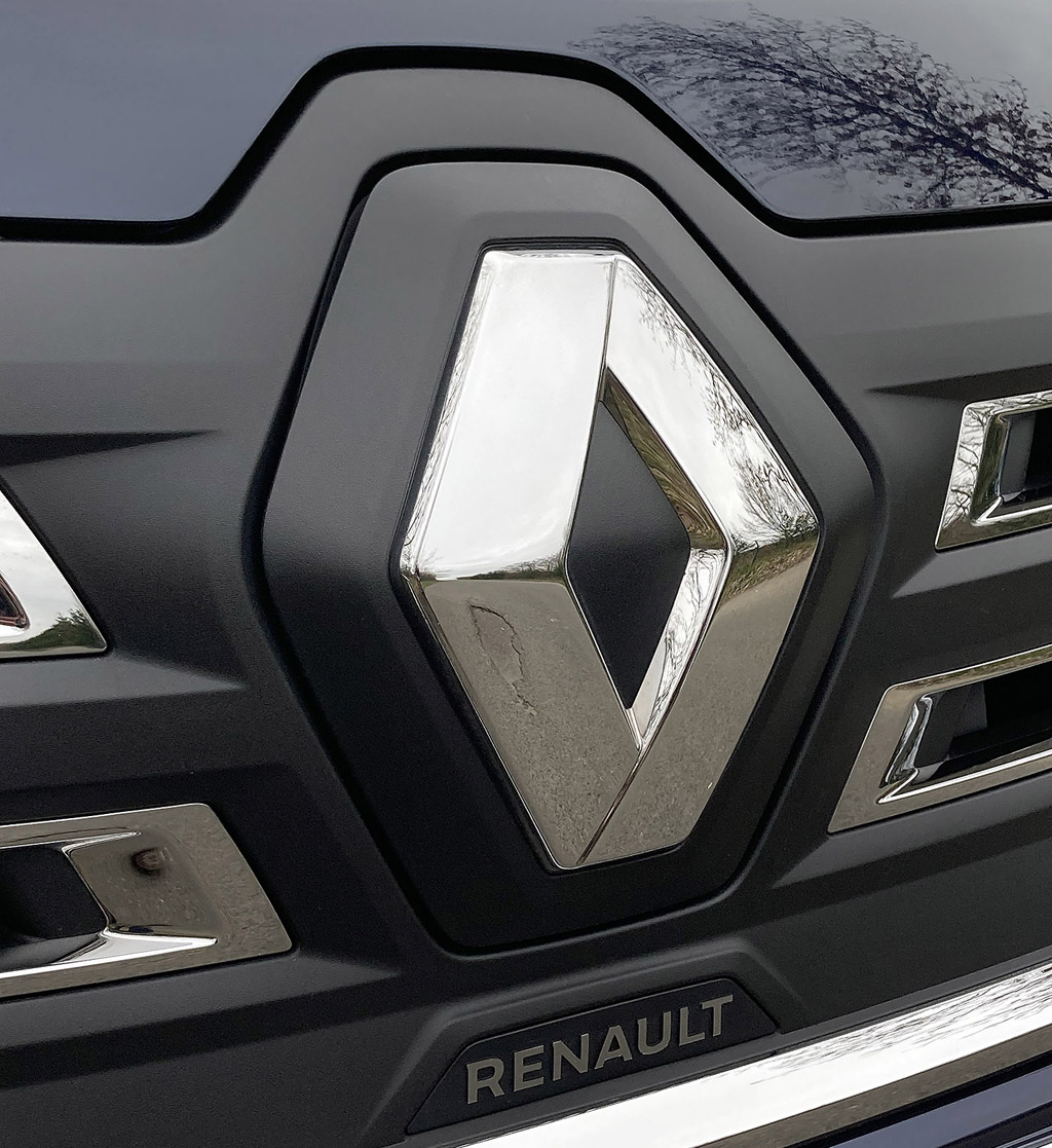 Blick auf die Frontpartie mit dem Renault-Markenrhombus am Vorderwagen.