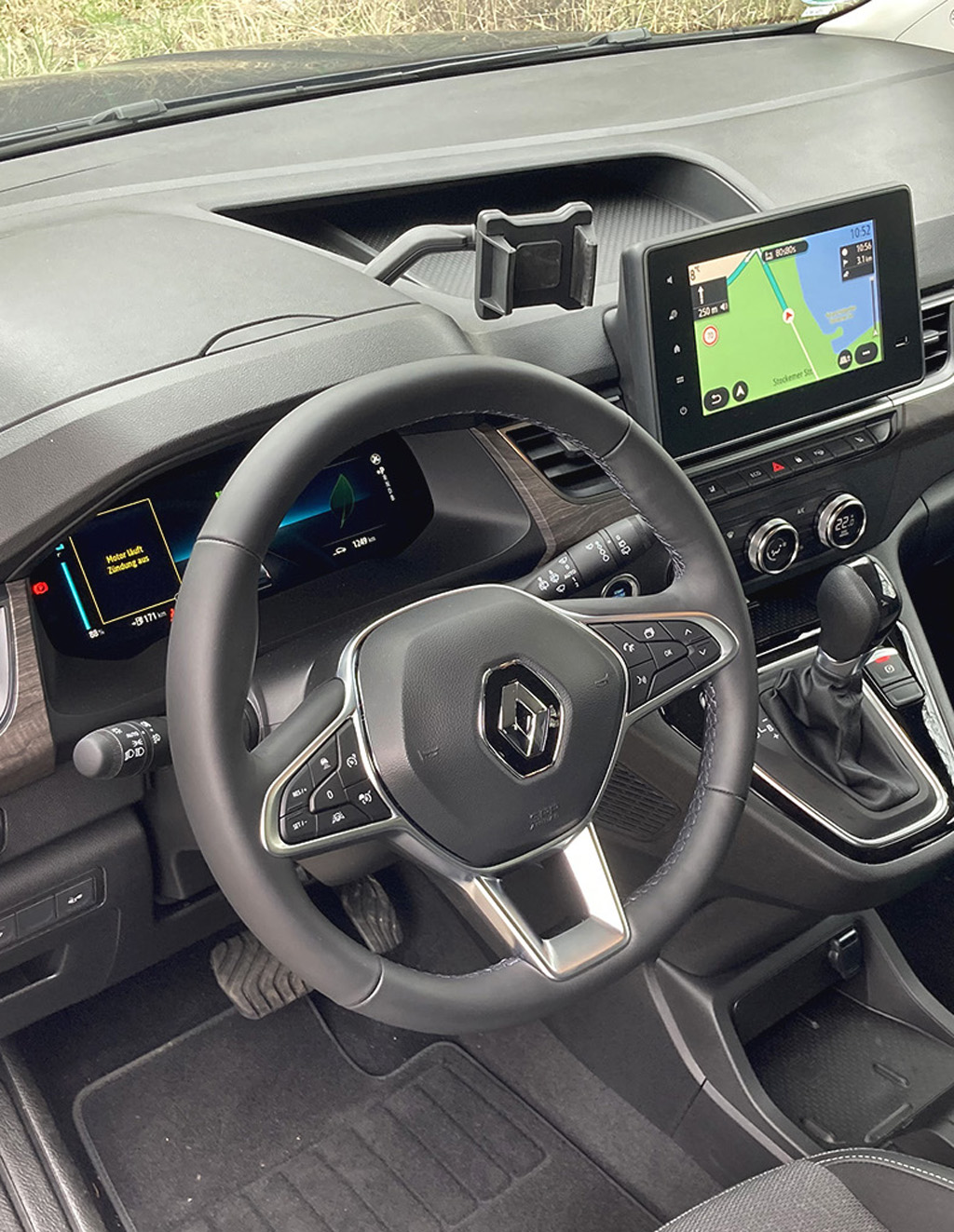 Das Auto: Längst ist der Kangoo wohnlicher geworden. Er wartet mit seitlichen manuellen Schiebe-, hinten Doppeltüren, ausreichend Ablagen, Staufächern, ordentlichen Materialien, großer Ladeöffnung und riesigem Kofferraum auf, der wie im Fall des 4,48 Meter langen, 1,91 Meter breiten und 1,83 Meter hohen Electric-E-Tech 542 bis 1730 Liter fasst, erweist sich darüber hinaus als überaus variabel, indem sich die Rückbank längs um gleich 14 Zentimeter verschieben lässt. Eine modulare Dachreling ist leicht ohne Werkzeug in ein Dachquerträgersystem umwandelbar. Die Rundumsicht geht dank der größeren Fenster vorn, an den Seiten und hinten in Ordnung. Im übersichtlichen Digitalcockpit mit energieeffizienterer Klimatisierung per Wärmepumpe und Infotainment samt „Over the air“-Aktualisierung fällt die Bedienung relativ leicht.