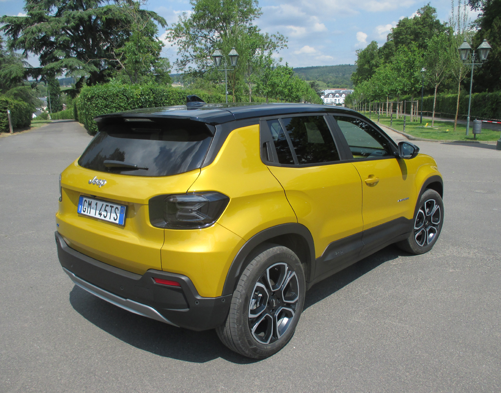 Motor: Elektro. Leistung: 115/156 kW/PS. Maximales Drehmoment: 260 Newtonmeter. Beschleunigung: 9,0 Sekunden von 0 auf Tempo 100. Höchstgeschwindigkeit: 150 Stundenkilometer. Antrieb: Vorderrad. Getriebe: Planetenradsatz. Elektrische Reichweite: 389-404 Kilometer kombiniert, bis zu 550 in der Stadt. Verbrauch: Laut Jeep nach WLTP 15,3-15,9 Kilowattstunden. Batteriekapazität brutto/netto: 54/51 Kilowattstunden. Onboard Charger: Dreiphasig mit 11 Kilowatt. Ladezeit Gleich-/Wechselstrom: Je nach Anschluss 24 Minuten von 20 auf 80 Prozent bei 100 Kilowatt über 5 Stunden 34 Minuten bei 11 Kilowatt bis 26 Stunden 41 Minuten bei 1,8 Kilowatt. Grundpreis: 37 000/31 092 bis 44 000/36 974 Euro.