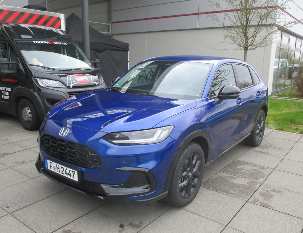Zum ZR-V: Bei ihm handelt es sich um ein neues C-Segment-SUV zwischen HR-V und CR-V. Das Design ist wie der Motorklang sportlicher. Man sitzt wie in einer Limousine. Der Vollhybrid setzt sich antriebsmäßig aus einem 2,0-Liter-Vierzylinder und zwei Elektromotoren zusammen. Das Drehmoment gelangt mittels stufenlos geregeltem Strom an den Elektromotor. Wie der Jazz Hybrid verfügt der ZR-V Hybrid so über eine automatische Kraftübertragung, die weder die manuelle Betätigung einer Kupplung noch Schaltvorgänge benötigt. Es gibt deshalb auch kein klassisches Getriebe, sondern lediglich eine feste Übersetzung wie in einem Elektrofahrzeug. Das Handling in dem Modell wirkt agiler, die Lenkung direkter. Schon Serie im ZR-V sind moderne Sicherheitstechnologien, von den Japanern Sensing genannt.