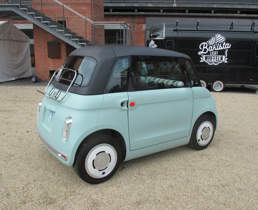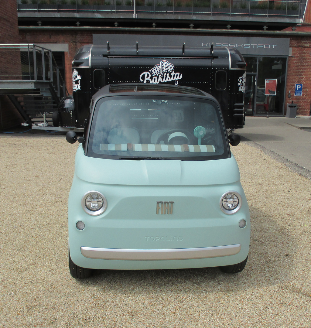 Den Topolino hat es damals, auf Basis des kleinen Fiat 500, des Cinquecento, von 1936 bis 1955 schon einmal gegeben. Bei der in Marokko gebauten Neuauflage handelt es sich, weitgehend identisch mit den beiden Citroën- und Opel-Pendants, um einen vollelektrischen Zweisitzer. Auch er sieht von vorn fast so wie von hinten aus, fährt mit nur 2,53 Metern Länge vor, ist 1,53 Meter hoch und 1,40 Meter breit. Sein Radstand beträgt 1,73 Meter. Der Wendekreis, ebenfalls ein Vorteil, misst lediglich 7,2 Meter. Als Stauvolumen geben die Italiener immerhin doch noch 63 Liter an.