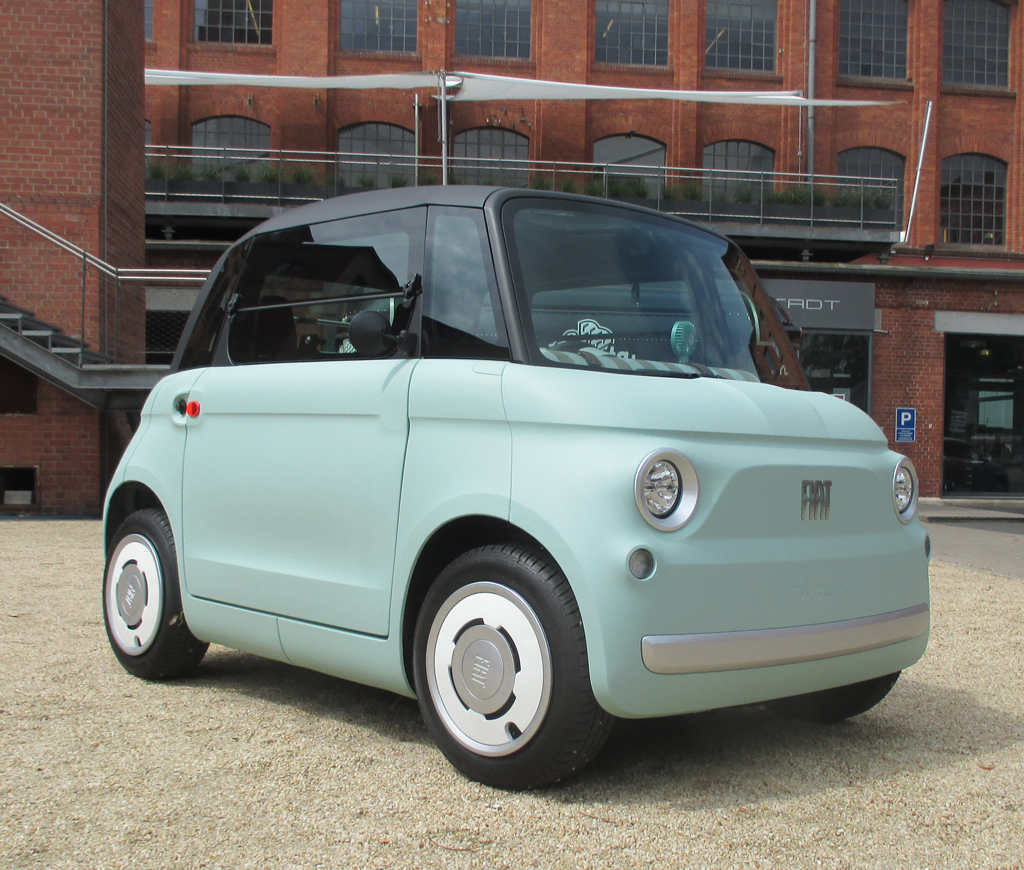 Frankfurt/Main – Erst Citroën Anfang 2021 mit dem Ami, dann Opel gegen Ende des Jahres mit dem Rocks-e: Jetzt ist, als dritte Marke des Stellantis-Konzerns, auch Fiat mit dem Topolino an den Start gegangen. „Auch das ist kein Auto“, sagt Fiat-Deutschland-Produktfrau Vanessa Schwalm jedoch gleich zu Beginn der Fahrvorstellung gerade in der Frankfurter Klassikstadt, „es ist ein Leichtkraftfahrzeug“, dessen Einstiegspreis bei 9890 Euro beginnt.