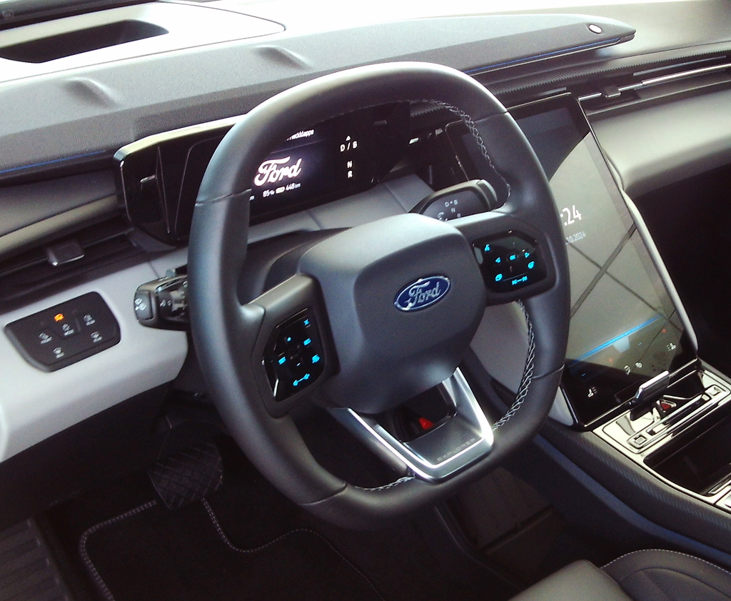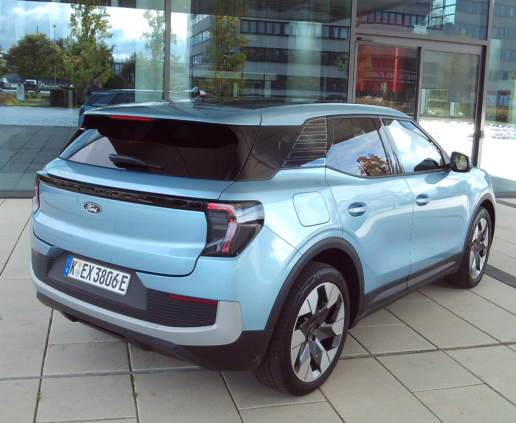 Auch wenn sportliche Überraschungen ausbleiben, beweisen die Ford-Ingenieure einmal mehr, dass sie agile Fahrwerke können. Diesbezügliche Änderungen im Vergleich zum VW-Schwestermodell sollen jedenfalls vor allem Aufhängung, Dämpfer und Elektronik betreffen. Natürlich ist der Explorer immer noch ein Mittelklasse-SUV, doch beim Unterwegssein mit ihm, merkt man tatsächlich schnell, dass er sich ausgewogen, wie bei Elektroautos üblich leise und außerdem mit minimalen Abroll-, Wank- oder Windgeräuschen fahren lässt. Der vergleichsweise kleine Wendekreis erlaubt, sich flink in der Stadt zu bewegen. Die Lenkung könnte sich etwas weniger indirekt anfühlen. Die Bremsen verzögern standfest. Bloß ein zumindest vollständiges Ein-Pedal-Fahren scheint zu fehlen, sonst wäre die Energierückgewinnung nicht so träge.