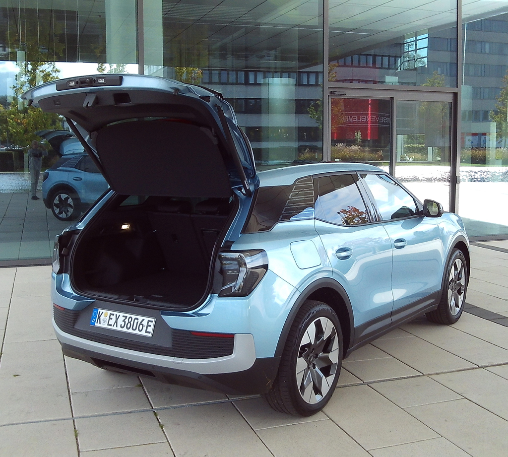 Das moderne Flair und, zumal im frischen, arktisch-eisigen Hellblau, durchaus Sympathie verbreitende Modell mutet futuristisch an, wirkt im glatten, stromlinienförmigen Design in der Tat mehr abgerundet und etwas bullig. Die Front ist komplett ohne Kühlergrill gestaltet, weil der nicht mehr benötigt wird. Die Dachlinie verläuft weich wie aus einem Guss bis in den markanten Dachspoiler und das ruhig umfließende Heck darunter hinein. Der ausreichend bequeme, manchem vielleicht etwas arg nüchterne Innenraum ist sauber verarbeitet, der qualitative Eindruck insgesamt recht wertig. Selbst im Fond bietet noch recht ordentlich Platz, wobei der Kofferraum 532/527 bis 1460/1455 Liter fasst. Alles liegt ganz gut im Blick. Lediglich die Sicht nach hinten bleibt etwas eingeschränkt. Der große Tablet-ähnliche und bewegliche 14,6-Zoll-Zentralmonitor mit Geheimfach dahinter dominiert das übersichtliche Cockpit. Die Bedienung ist rasch im Griff. Unter der Mittelkonsole findet sich ein praktischer, frei gestaltbarer 17-Liter-Stauraum für größere Flaschen, Laptop, sogar Ordner.